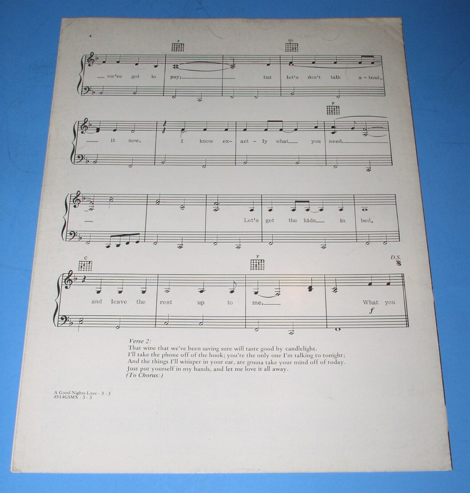 This is the original, vintage sheet music for the Tammy Wynette song, "A Good Night's Love". Dated 1982 House Of Gold Music. A terrific item for the fan or collector.
