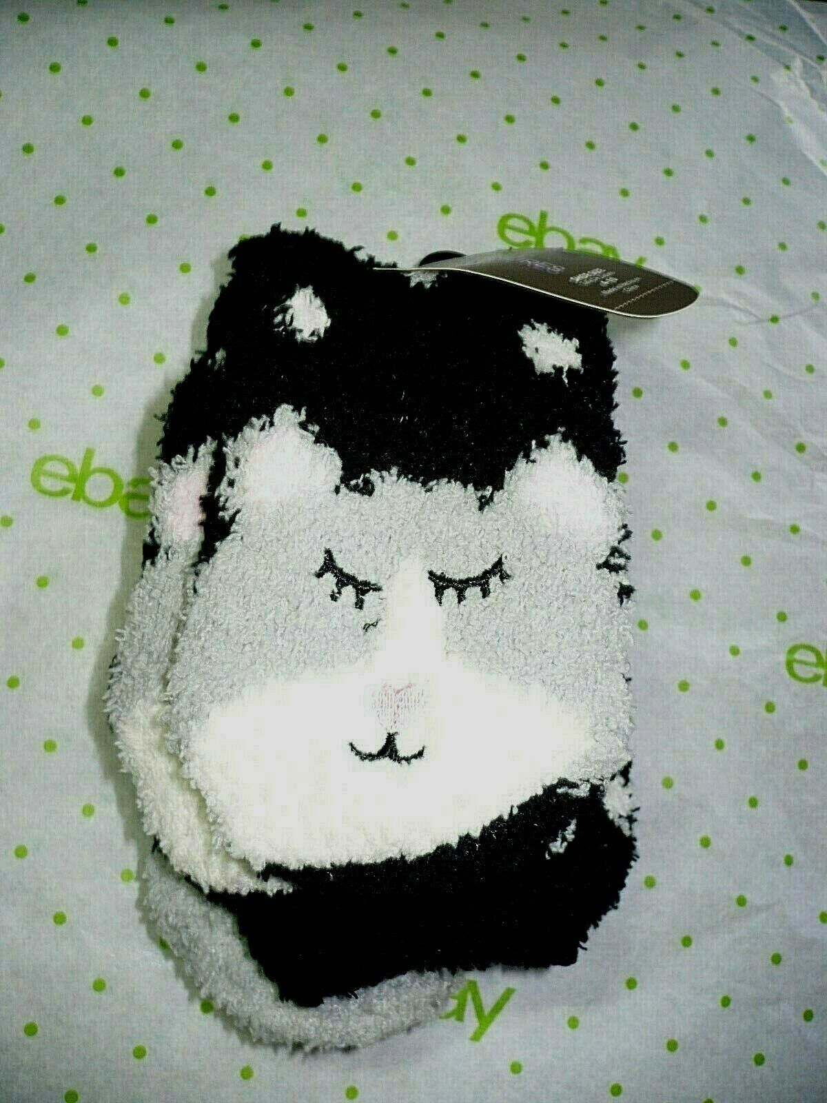 Secret Treasures Women's Cozy Fuzzy Crew Socks 2 Pair Shoe 4-10 Cat & Stripe