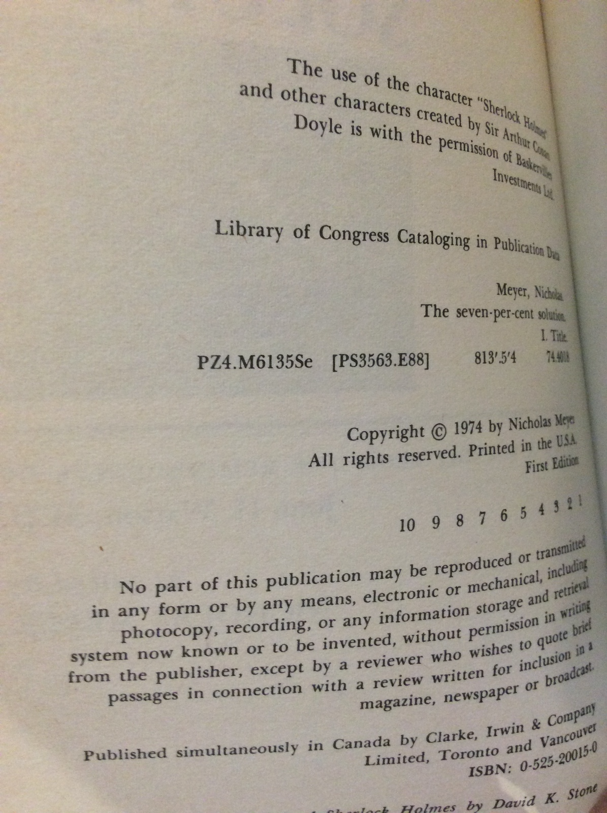 THE SEVEN-PER-CENT SOLUTION by JOHN WATSON - hardcover - FIRST EDITION