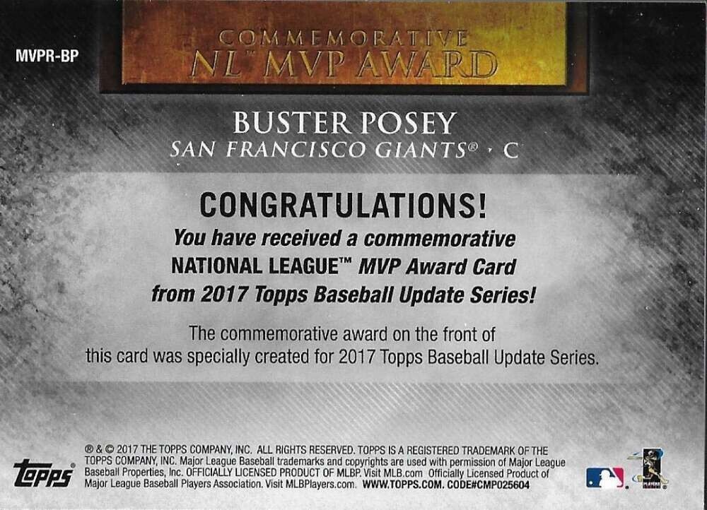 2017 Topps BUSTER POSEY 2012 Commemorative MVP Award MVPR-BP