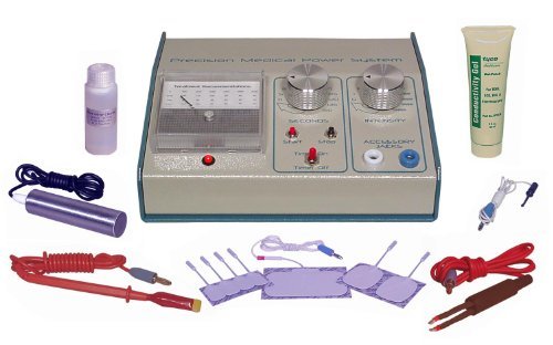 Product description: Deluxe Use Kit. Like the 300 unit, this will perform all Transcutaneous and No-Needle Electrolysis procedures but comes standard with a fully programmable treatment timer. Set the appropriate treatment time, press the start button and relax (substantially reduces the risk of over treatment). Fully-adjustable precision electrolysis power system comes with all of the following features: --Precision jeweled panel meter, 120 Volt or 220 Volt input, five wall plug options, and a 1 year total-coverage warranty. --Safety features: Auto calibrated 5000uA maximum with overload protection. 100% DC driver electronics. --Foot switch compatible. --Electrical Output Range: 300K to 22,000K ยตV (10V-6). --Intensity, Output Range: 0.01-5,000mA (0-100 ?)(10A-3). Kit Includes Deluxe Transcutaneous Electrolysis Accessory Kit: (contains all items shown). One pair of double-shielded galvanic tweezers, 1X4 inch stainless steel anode with attachment assembly, long-life chamois swab electrode, 1 hands-free electrode clip, 1 easy-connect patch electrode assembly (pigtail lead), one reusable 4X4 inch deluxe patch (20 skin adhesions average per patch), two reusable 2X2 inch deluxe patches, four reusable 1X1 inch deluxe patches, 3 Oz. supply of high viscosity electrolyte gel, 2 Oz. supply of low viscosity (thin) electrolyte gel and the Transcutaneous Textbook "Cosmetologist's Guide to Transcutaneous and Conventional Electrolysis". All in one convenient, ready-to-use kit. This kit will perform all of the Transcutaneous Electrolysis procedures including: galvanic patch, swab, tweezers and clip applications. Gel and electrolyte quantity sent in the kit is sufficient for 3 months of use for the average customer.
