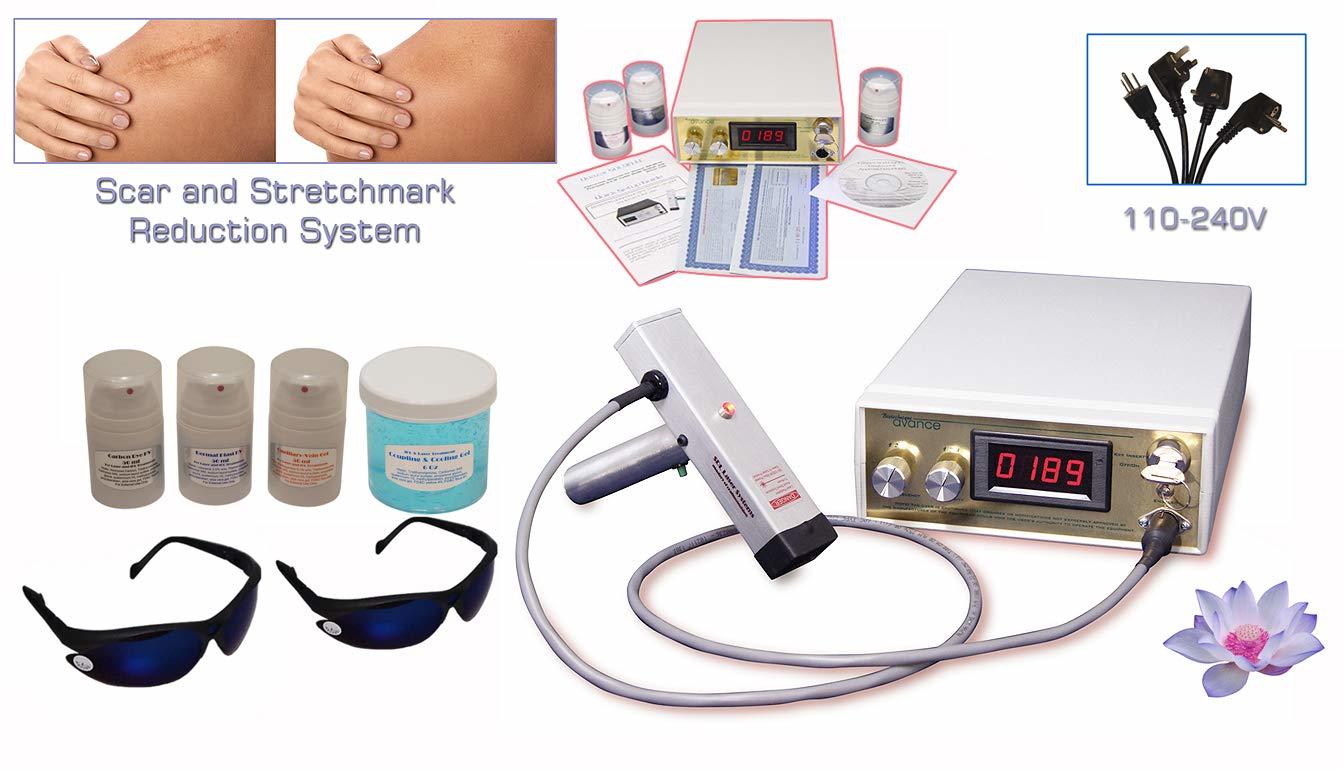 Traitement de reduction des cicatrices et des vergetures, systeme de maison et de salon pour hommes et femmes. Fonctionne sur 110-240 Volts, compatibilite globale garantie. A utiliser pour la reduction des cicatrices et des vergetures, mais le systeme peut etre utilise pour une grande variete de traitements. Epilation permanente, Reduction de varicosites, Tonique de la peau, Modelage du corps, Reduction de l'acne, Rajeunissement des photos, Hyper Pigment - Enlevement des taches pigmentaires, Enlevement des tatouages, Reduction des rides, Psoriasis, Rosacee, Dommages causes par le soleil, Tache, ) Enlevement, traitement des champignons des ongles et plus. Livre avec une machine de traitement de beaute, des lunettes de protection et des instructions. Fourniture de 6 oz de gel filtrant pour le traitement des cicatrices et des vergetures. Traitements pour enlever les cicatrices, equipement a faible coût pour la maison ou le salon. Les instructions viennent avec des images avant apres et des references cliniques. Egalement approuve pour raffermir la peau, effacer les rides. Cet appareil est le meilleur equipement et vient avec une creme de traitement supplementaire. Stimulation du collagene et augmentation du teint. Presente par Bio-Avance, le leader des equipements, accessoires et fournitures de cosmetologie pour salons et medispa. Choisi par des estheticiennes plus professionnelles.