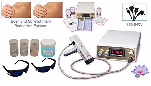 Tratamiento de maquina de reduccion de cicatrices y estrías, sistema de hogar y salon para hombres y mujeres. Funciona en 110-240 voltios, compatibilidad global garantizada. Se usa para la reduccion de cicatrices y estrías, pero el sistema se puede usar para una amplia variedad de tratamientos. Depilacion permanente, reduccion de venas varicosas araña, tonificacion de la piel, escultura corporal, reduccion del acne, rejuvenecimiento fotografico, hiperpigmentacion, eliminacion de manchas de edad, eliminacion de tatuajes, reduccion de arrugas, psoriasis, rosacea, daño solar, manchas (lunar, verruga, etiqueta cutanea) ) Eliminacion, tratamiento de hongos en las uñas y mas. Con gafas protectoras, instrucciones. Suministro de 6 onzas de filtro de gel de cicatrizacion y estrías. Tratamientos de eliminacion de cicatrices para equipos de bajo costo para el hogar o el salon. Instrucciones con fotos antes y despues y referencias clínicas. Tambien aprobado para estiramiento de la piel, borrado de arrugas. Este dispositivo es el mejor equipo y viene con crema de tratamiento adicional. Estimulacion de colageno y aumento del tono de la piel. Traído a usted por Bio-Avance, el líder en el salon y equipos, accesorios y suministros de cosmetología medica. Elegido por esteticistas mas profesionales.
