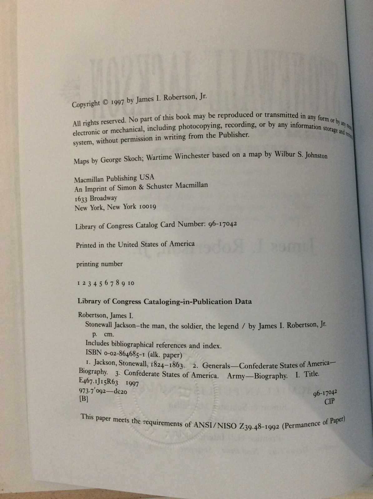 STONEWALL JACKSON by JAMES ROBERTSON - hardcover - FIRST EDITION