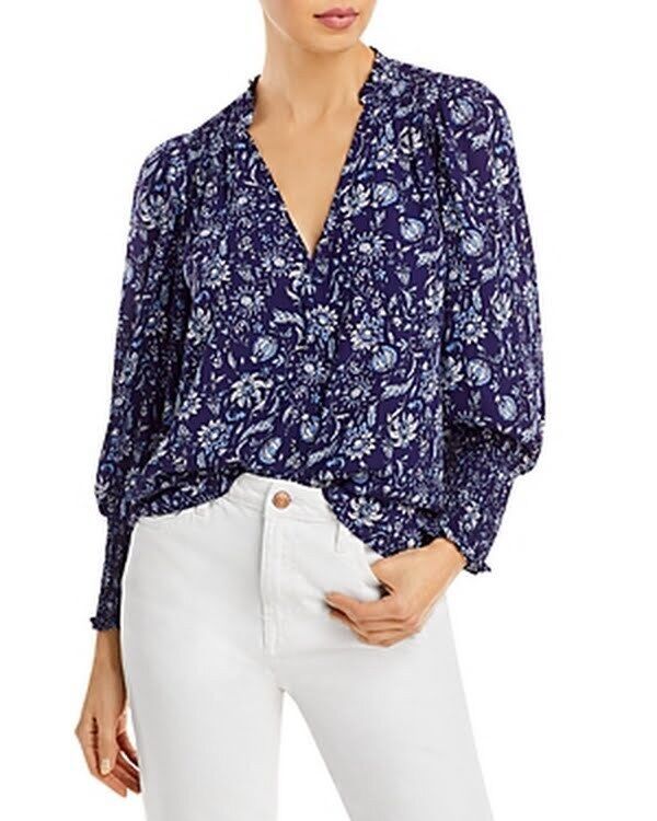 Aqua Floral Print Smocked Blouse, Size Small and 50 similar items