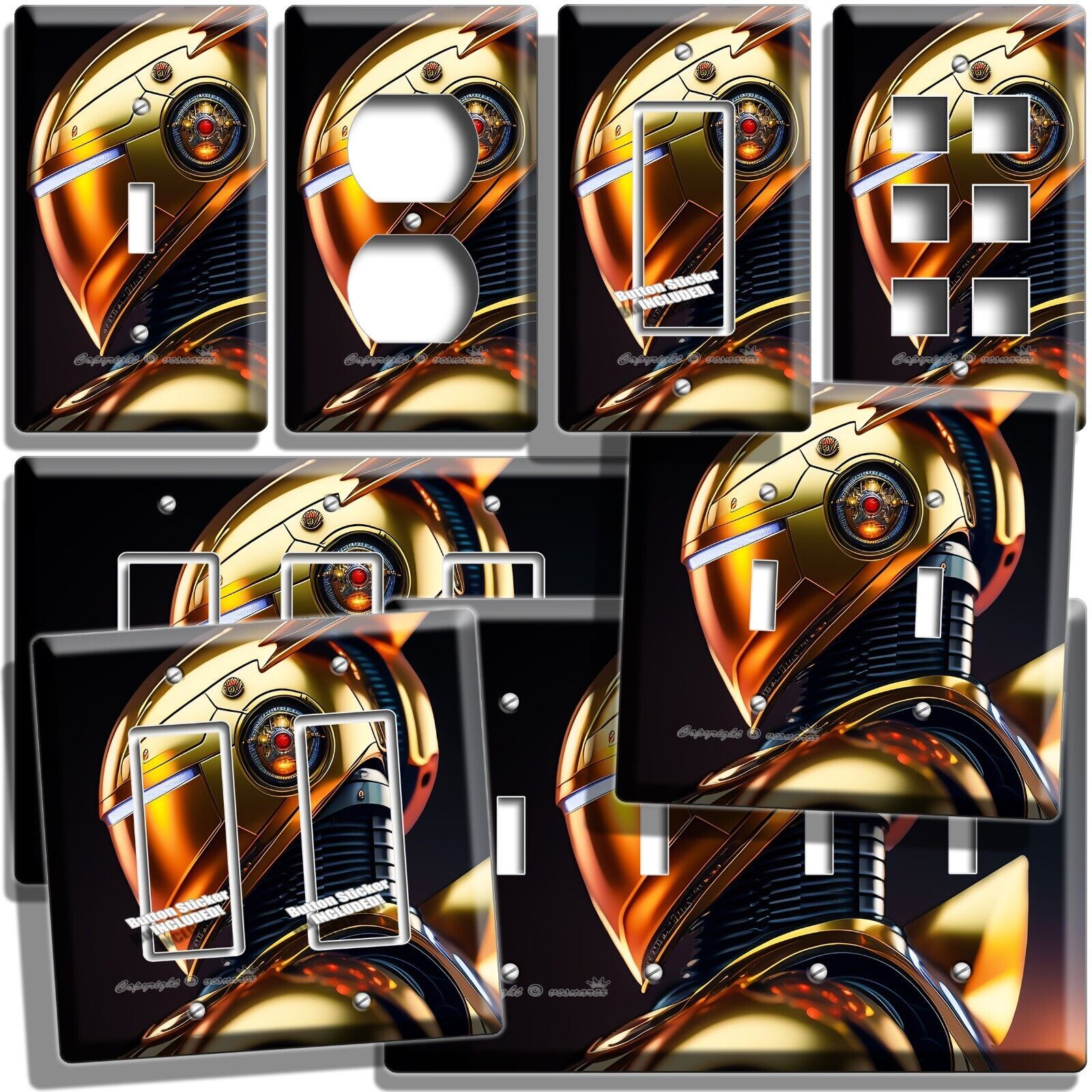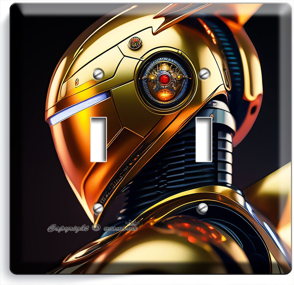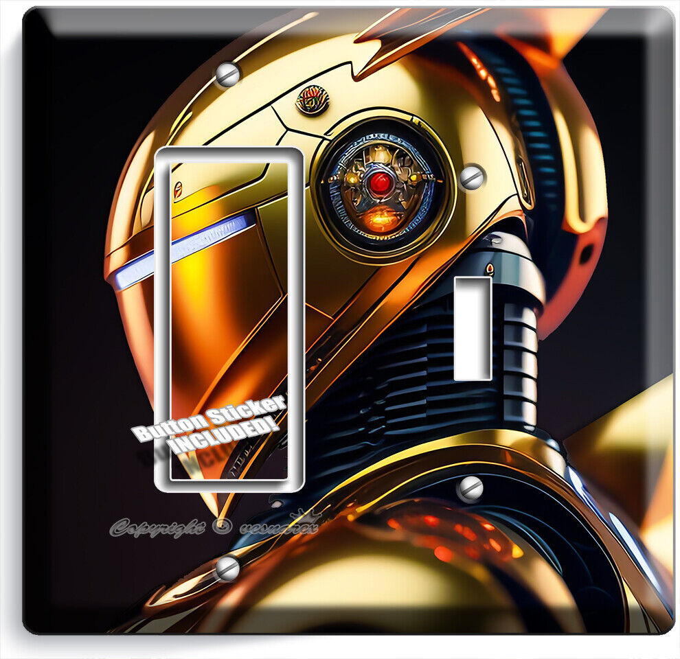 AI GOLDEN CYBORG ROBOT LIGHT SWITCH OUTLET WALL PLATES NERD GEEK ROOM ART DECOR