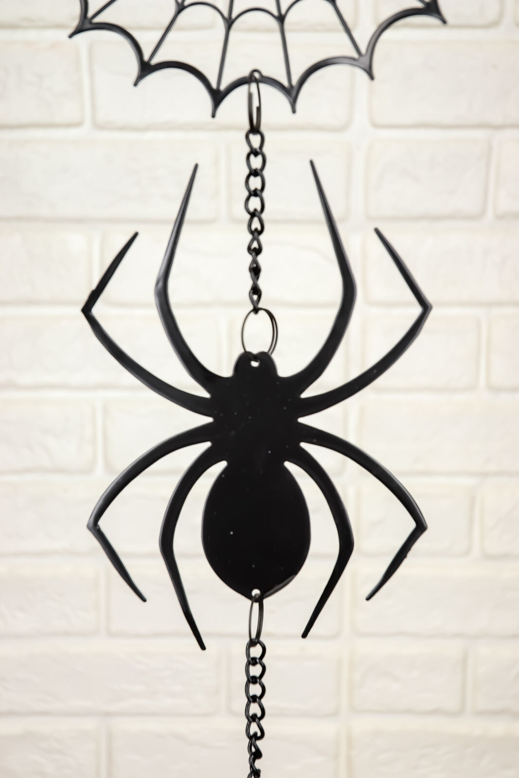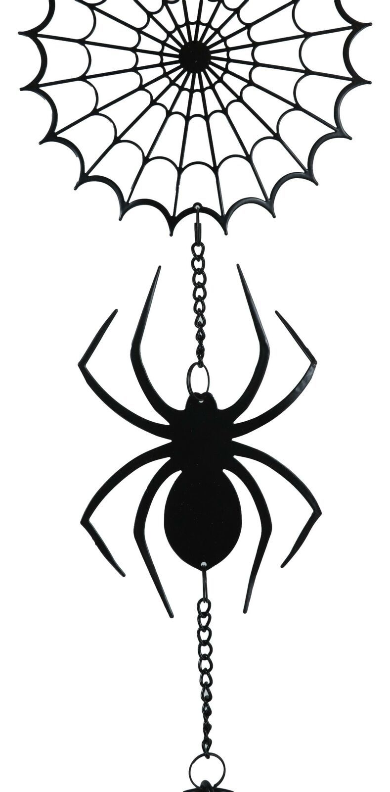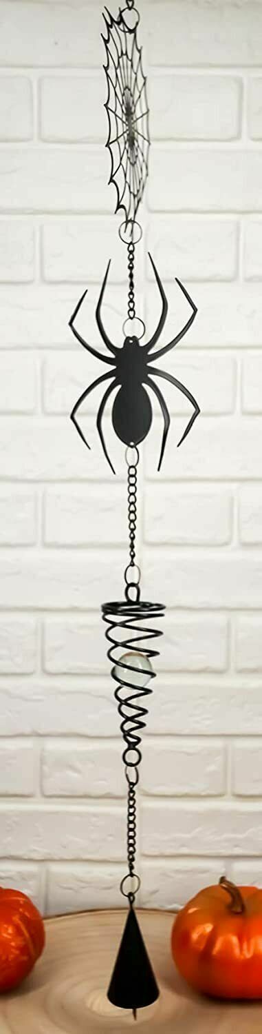 ? This three in one hanging decoration, wind spiral and wind chime will make a dark statement in your home or garden. Based on the alternative icon the Spider, it will certainly give your guests a fright!