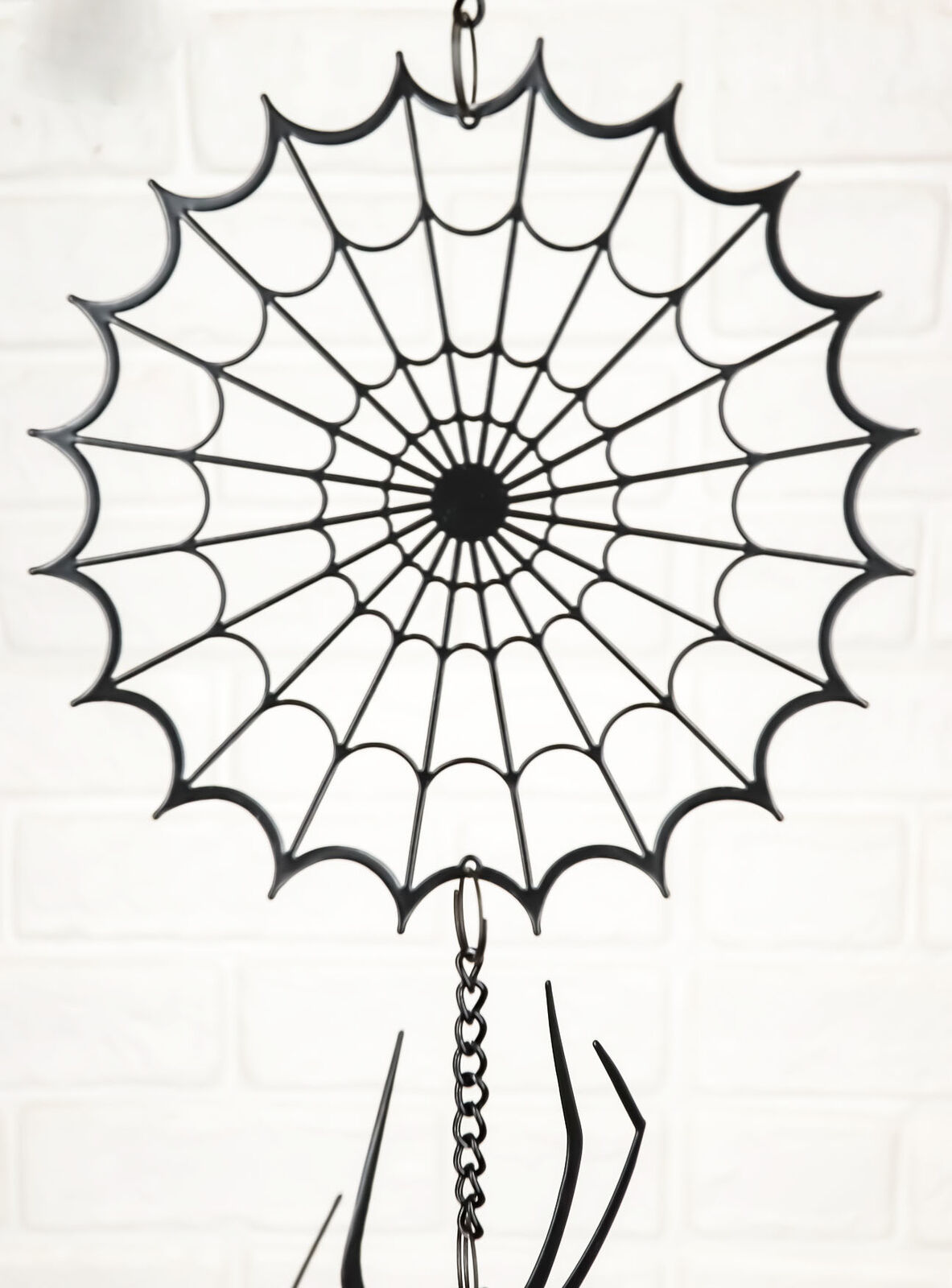 Gothic Arachnid Spider Web Cobweb Metal Wall Hanging Mobile Wind Chime W/ Beads