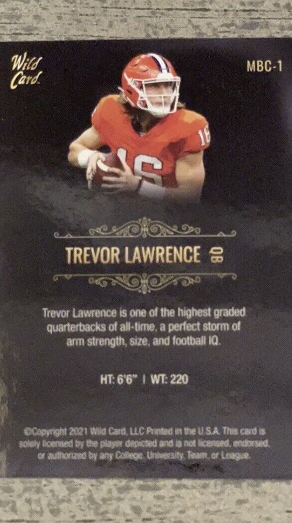 2021 Wild Card Matte Gold Trevor Lawrence MBC-1 Rc Rookie - Clemson University.