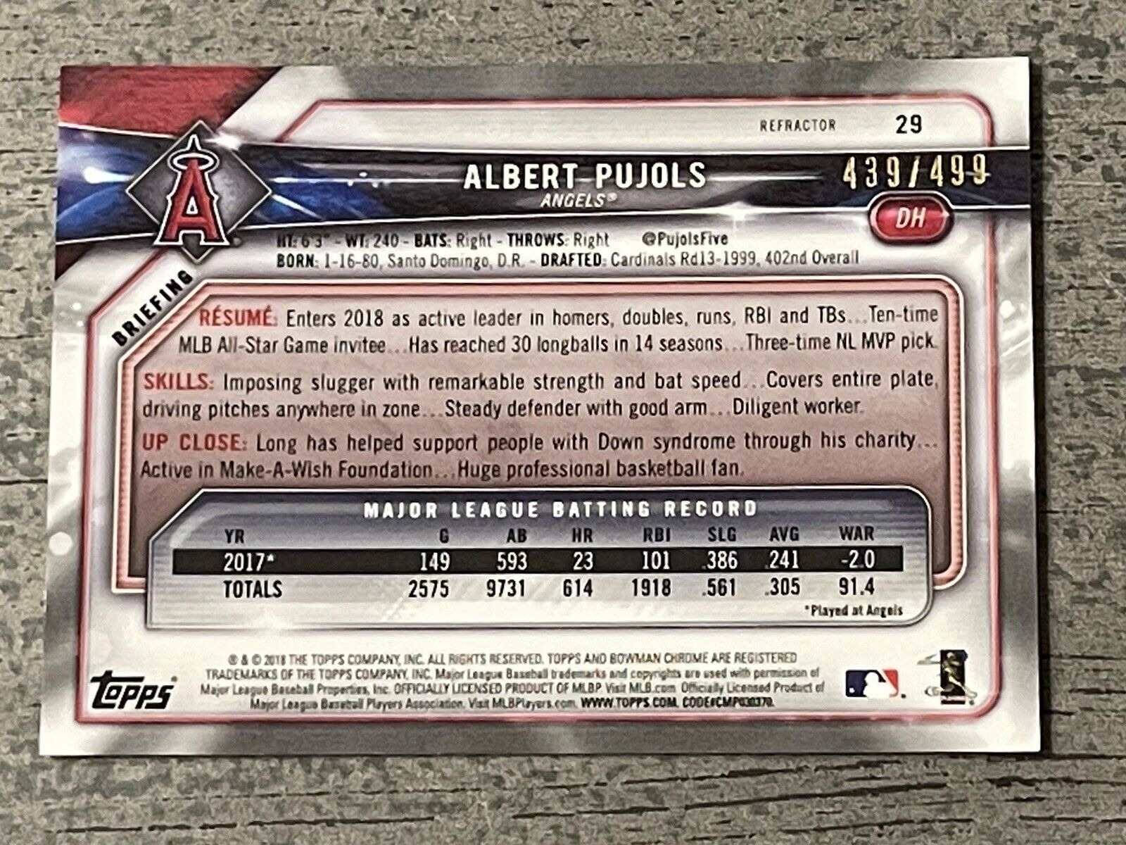 2018 Bowman Chrome Refractor #29 Albert Pujols 439/499 LAAngels/Cardinals 700 HR