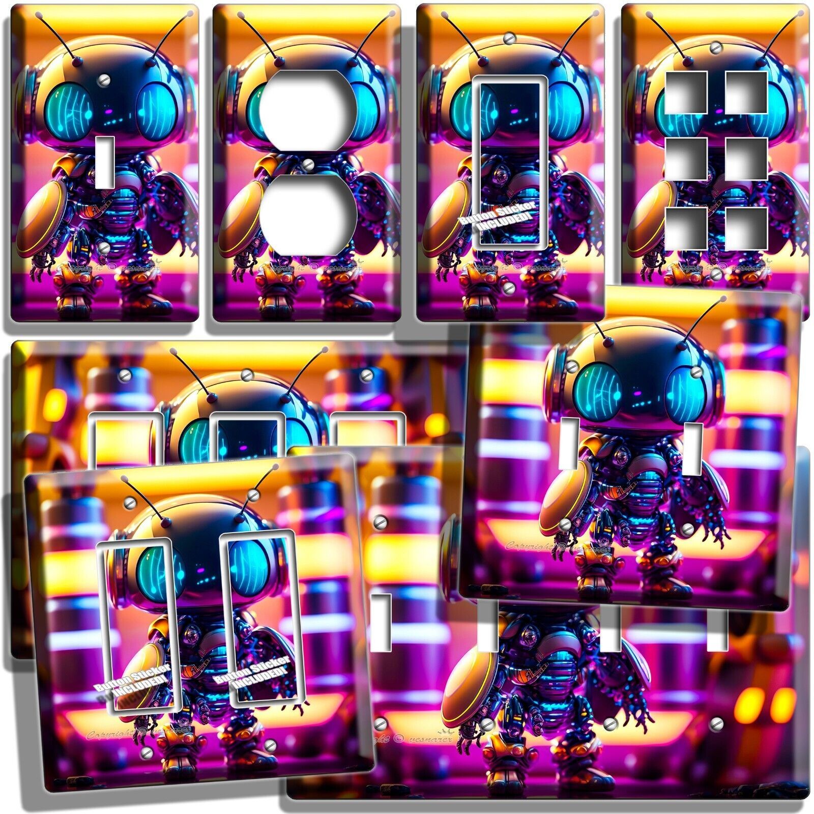 CUTE FUTURISTIC AI TOY ANT ROBOT LIGHT SWITCH OUTLET WALL PLATES GEEK ROOM DECOR