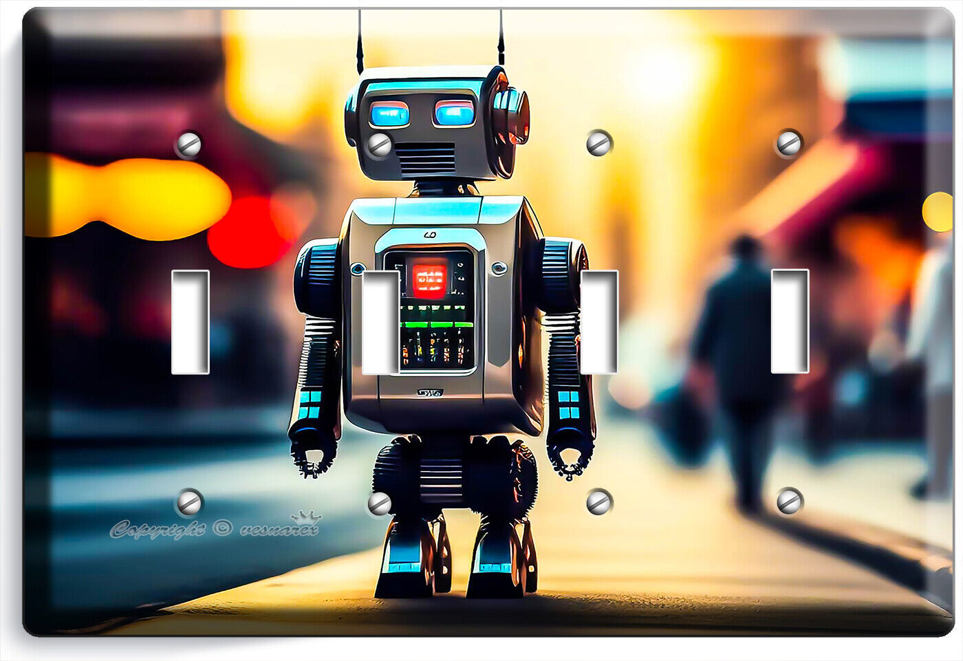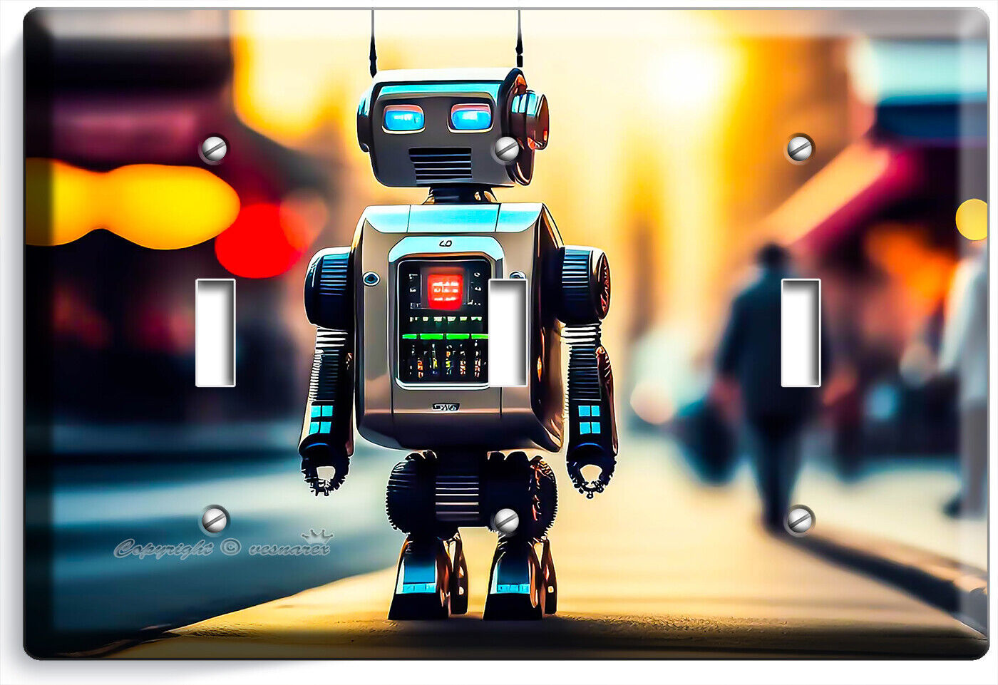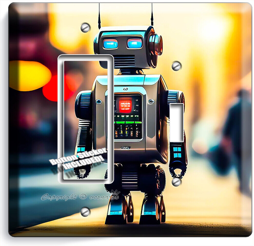 FUTURISTIC AI TOY ROBOT LIGHT SWITCH OUTLET WALL PLATES GEEK NERD ROOM ART DECOR