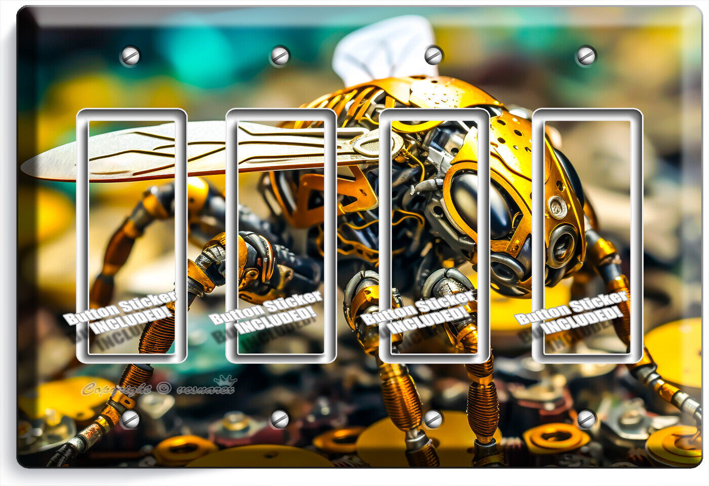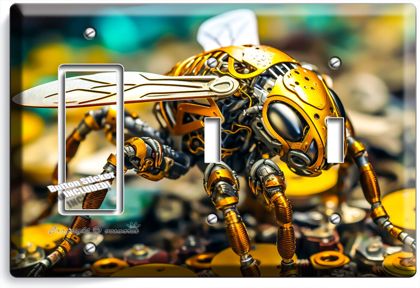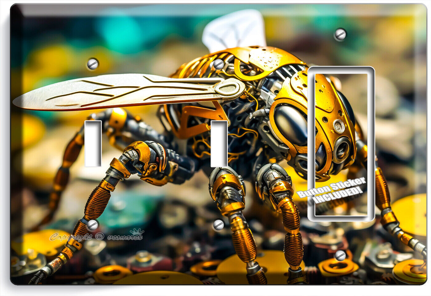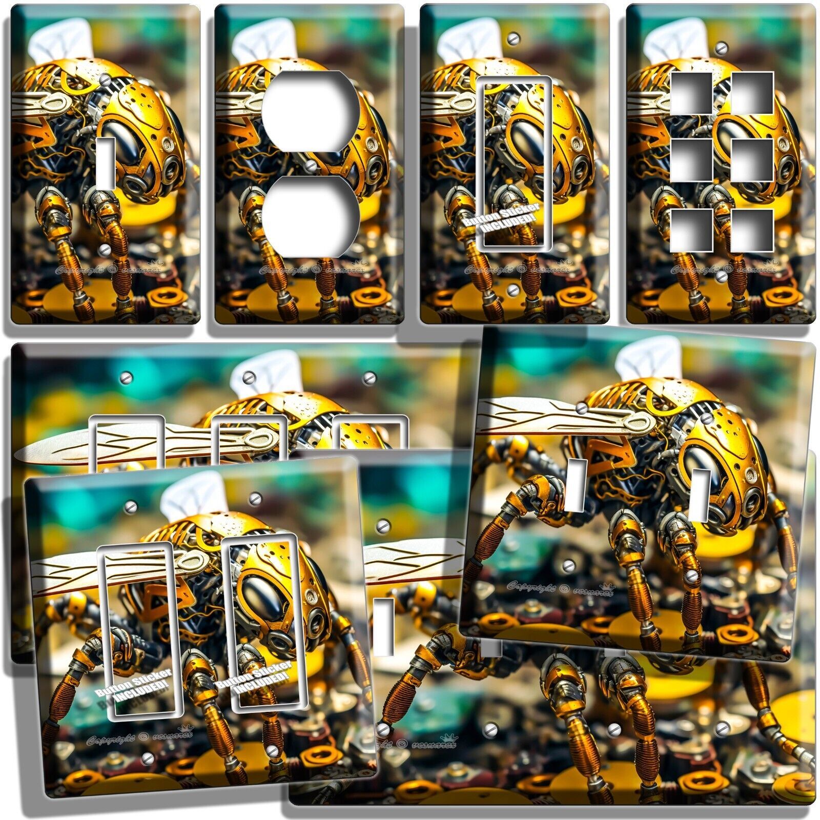 AI INSECT YELLOW BEE ROBOT BUG LIGHT SWITCH OUTLET WALL PLATE GEEK ROOM HD DECOR