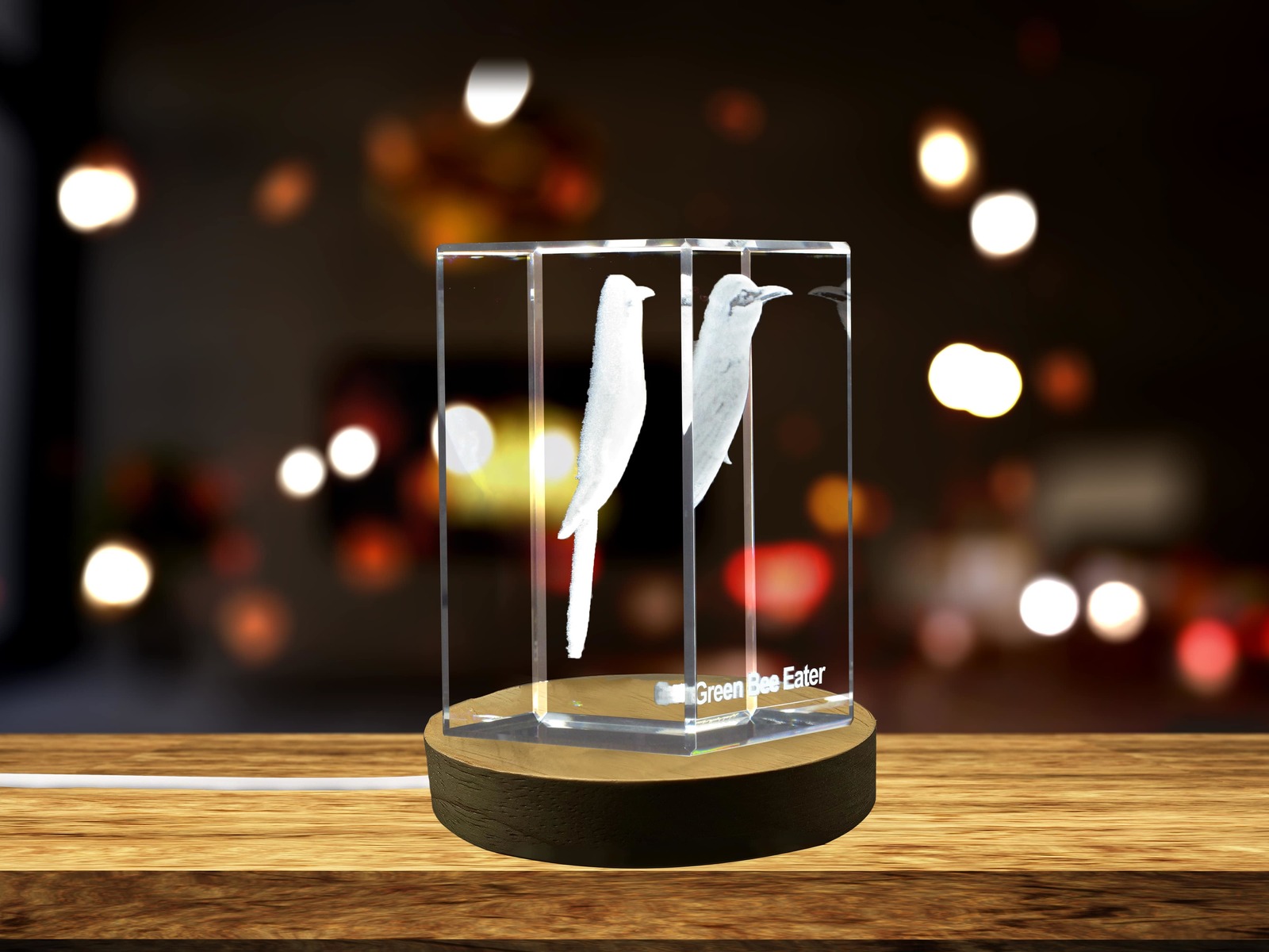 LED Base included | Green Bee Eater 3D Engraved Crystal 3D Engraved Crystal