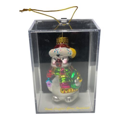 Unique Treasures Blown Glass Christmas Penguin Hat Ornament Wreath Bird House