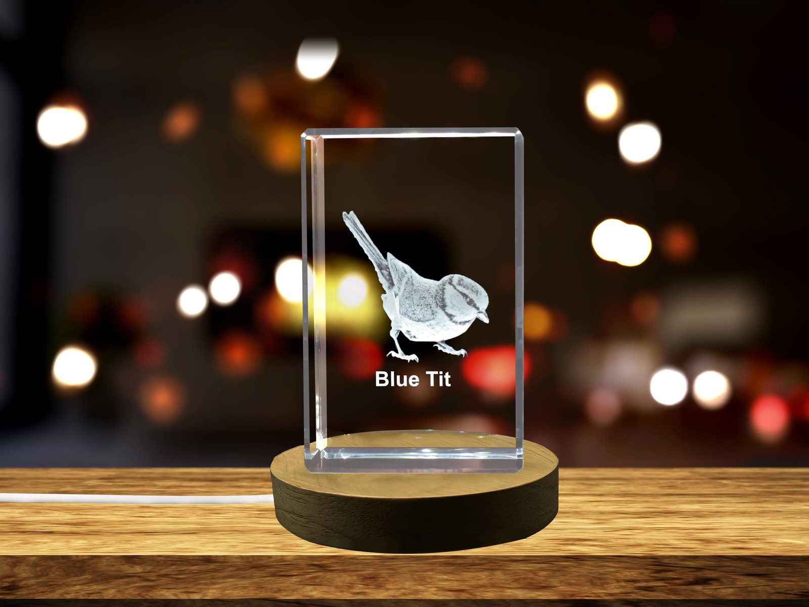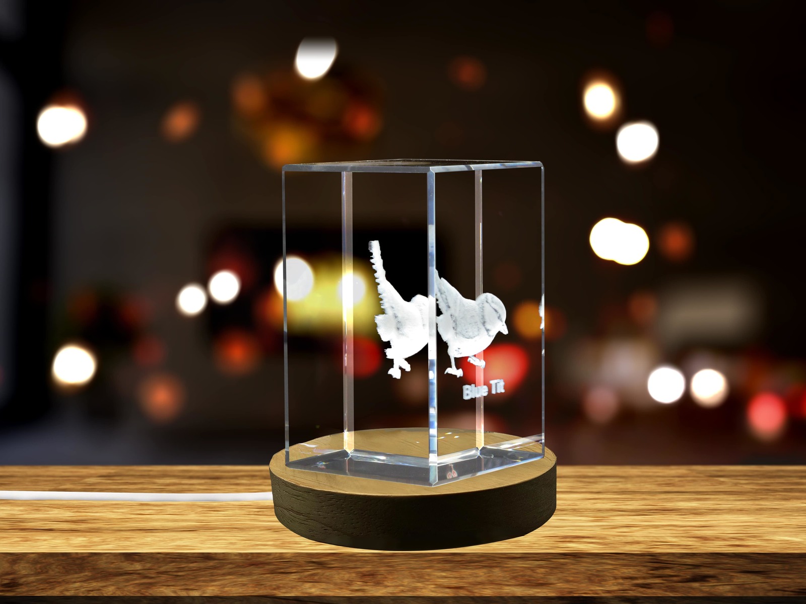LED Base included | Blue Tit 3D Engraved Crystal 3D Engraved Crystal Keepsake