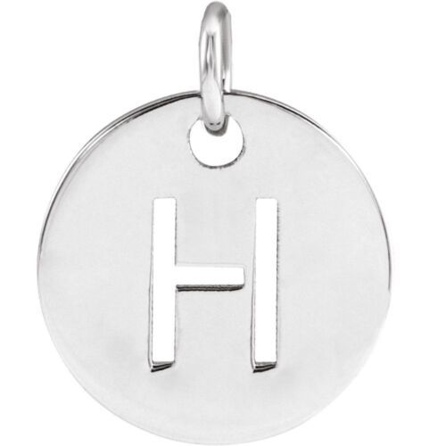 This adorable and stylish round disc with cut-out initial 'H' pendant is crafted of 14K White Gold . This is for the pendant only, no chain is included.