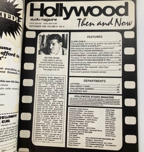 VTG Hollywood Studio Magazine Then Now September 1988 Clark Gable w Poster