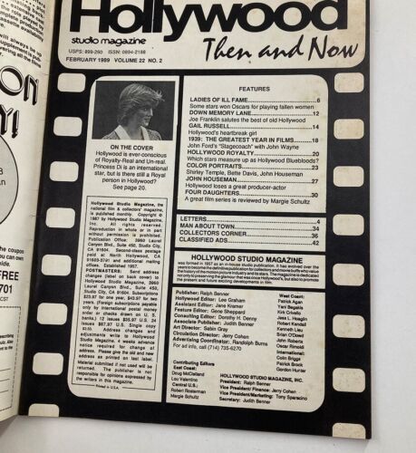 VTG Hollywood Studio Magazine Then & Now February 1989 Princess Diana w Poster