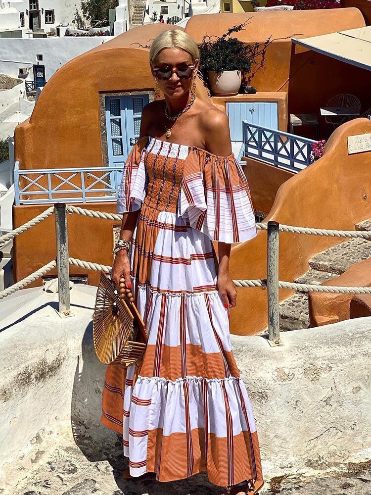 Summer Print Boho Slash Neck Maxi Dress and similar items
