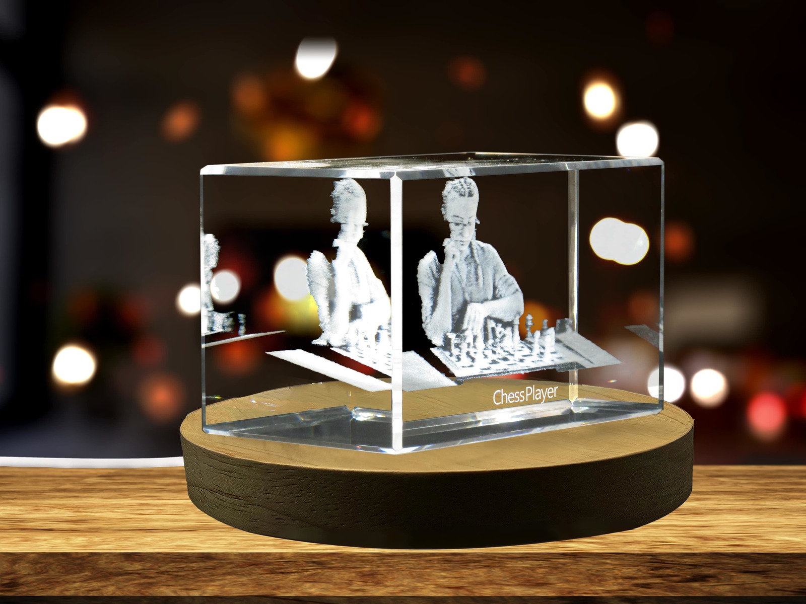 LED Base included | Chess Player 3D Engraved Crystal 3D Engraved Crystal