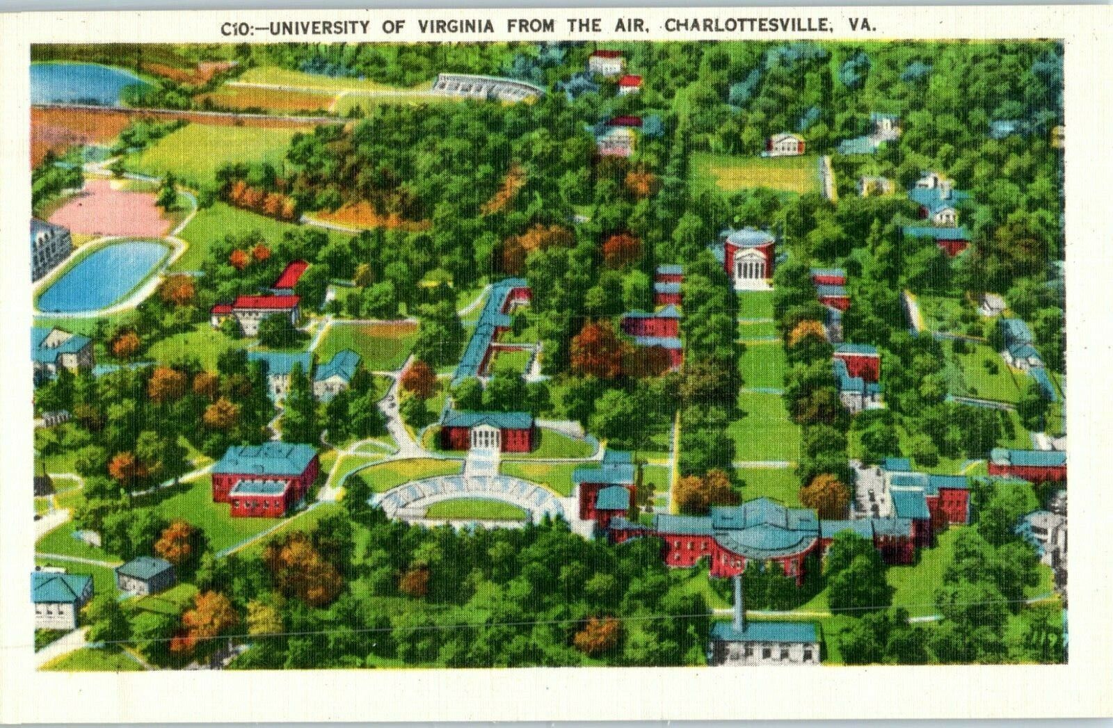 Aerial View Vintage Linen Postcard University Of Virginia Charlottesville