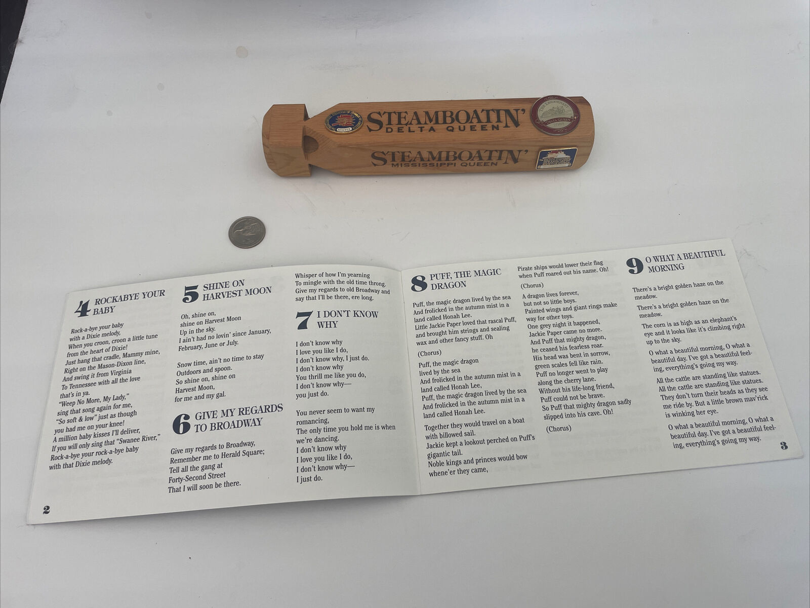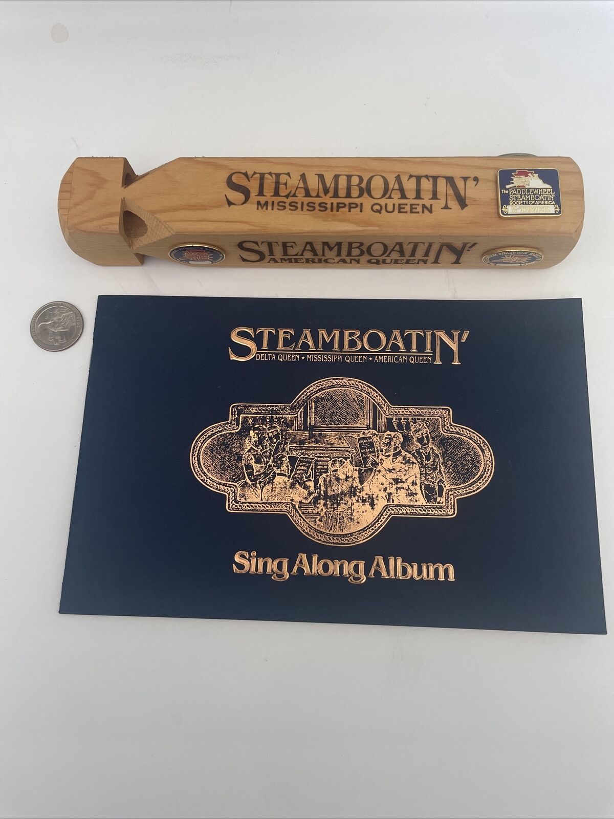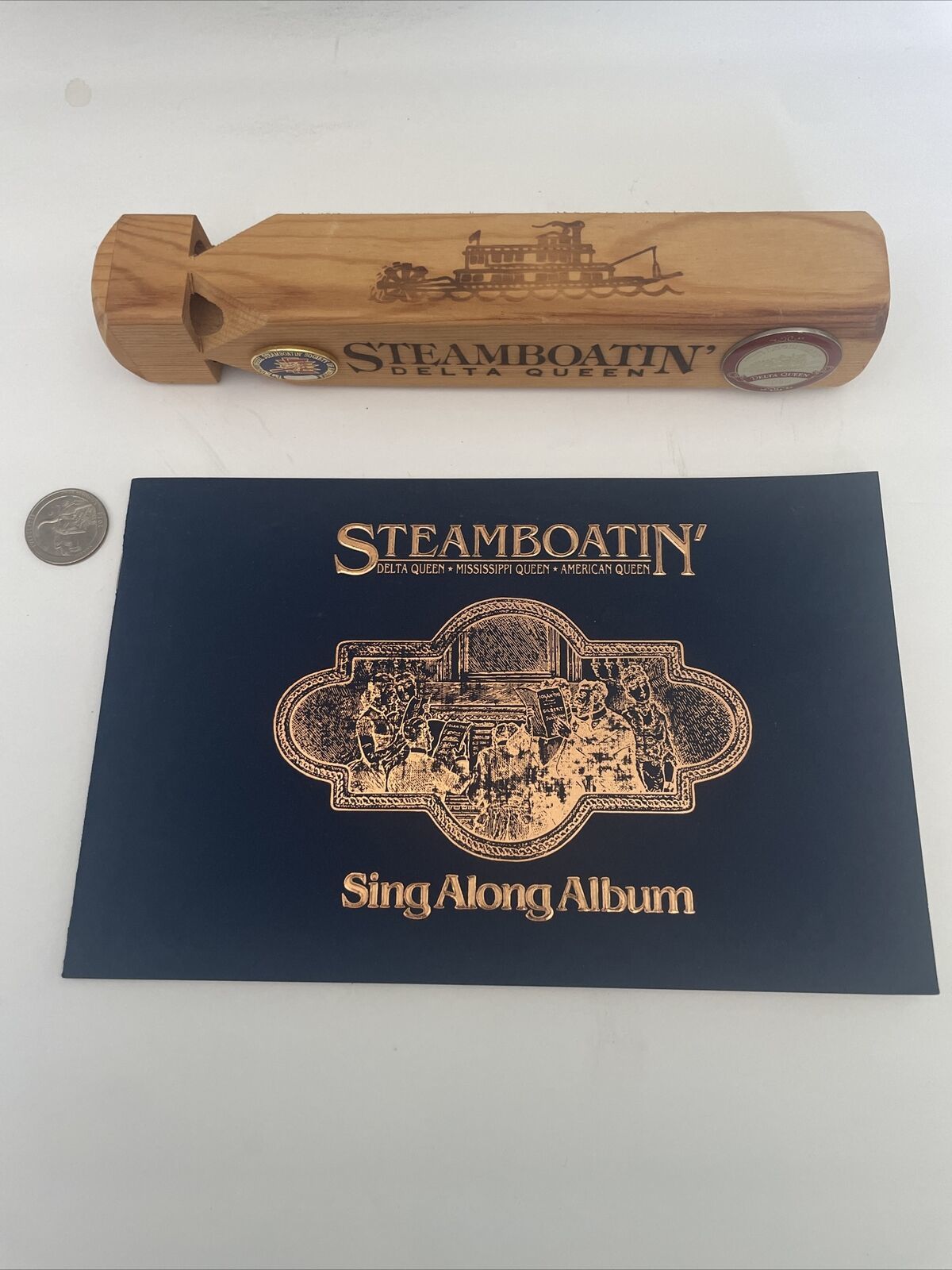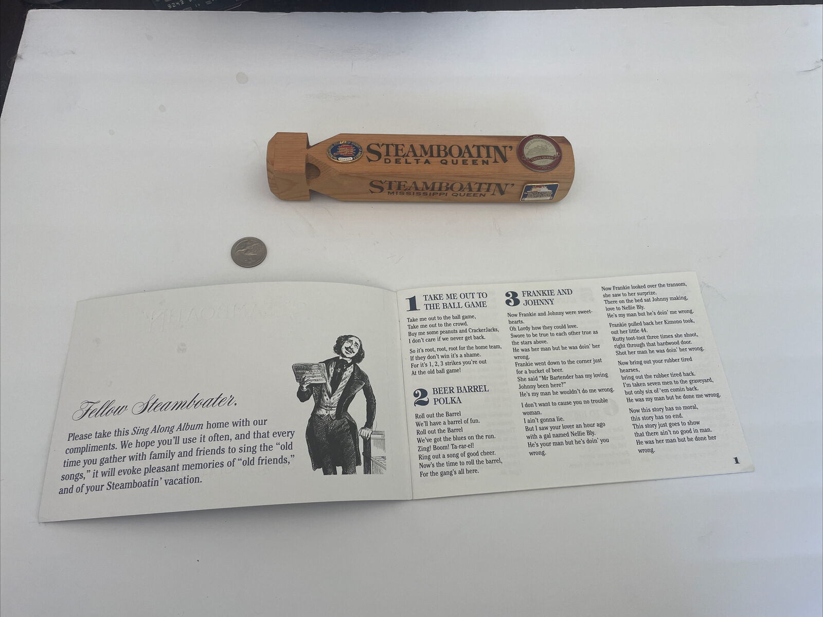 Lot 5 pins, whistle and singalong book with 58 songs Paddlewheel Steamboat Society Whistle Pins Delta Queen Steamboat in?.