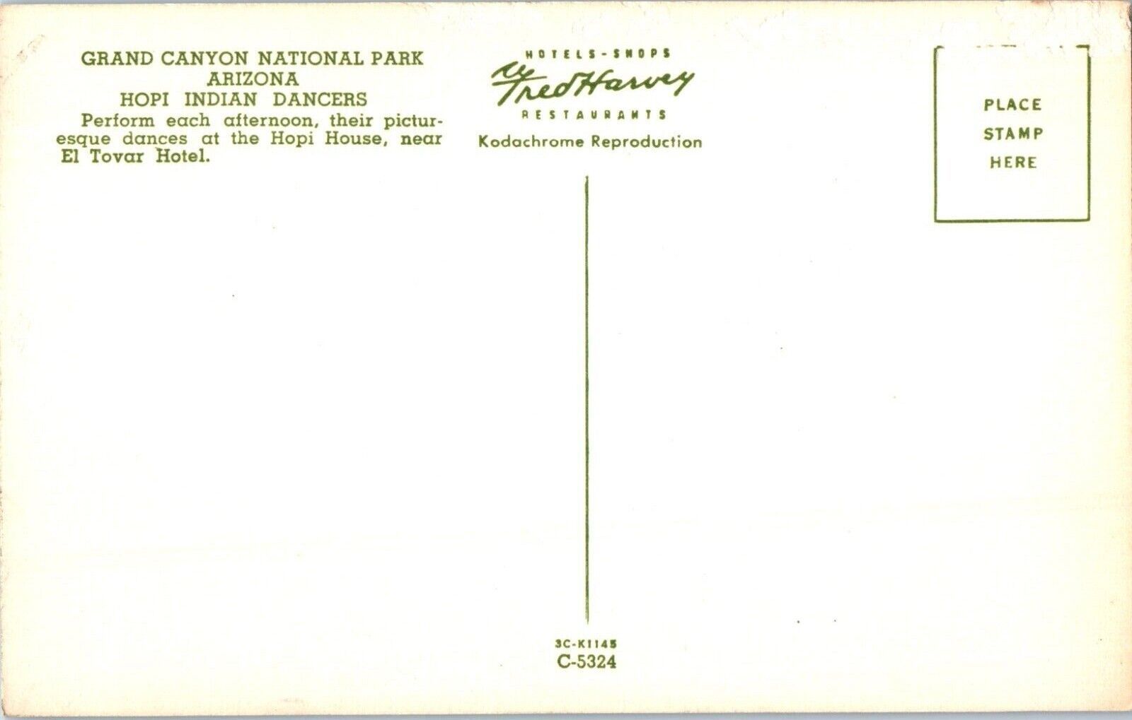 Hopi Indian Dancers Grand Canyon National Park Arizona Fred Harvey Postcard