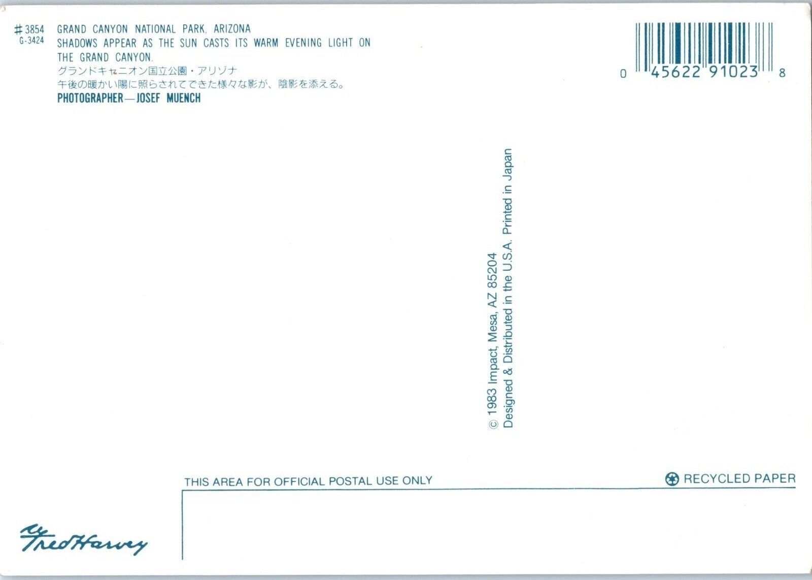 Grand Canyon National Park Arizona Fred Harvey Postcard w Japanese Translate