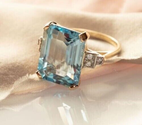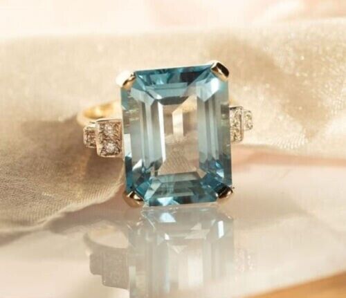 Certified Natural Aquamarine 14 k Solid Yellow Gold Wedding Ring For Women Gift