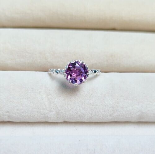 Certified Natural Amethyst 14 K White Gold Handmade Ring Gift For Free Ship