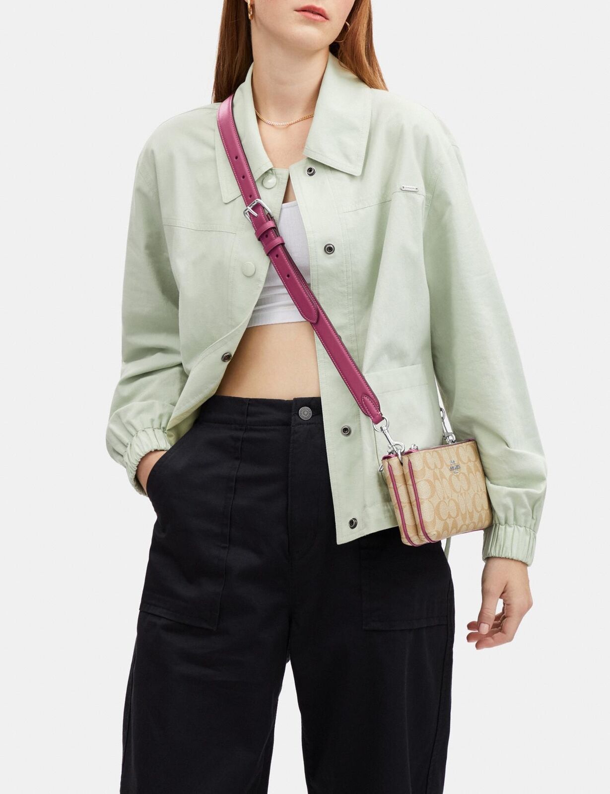Detachable strap with 22" drop for shoulder or crossbody wear
