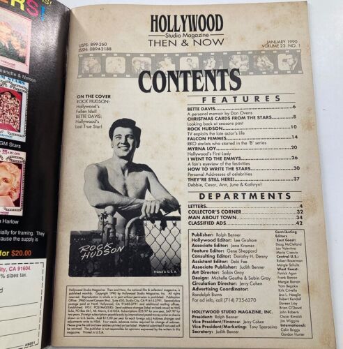 Hollywood Studio Magazine Then & Now January 1990 Rock Hudson w Poster