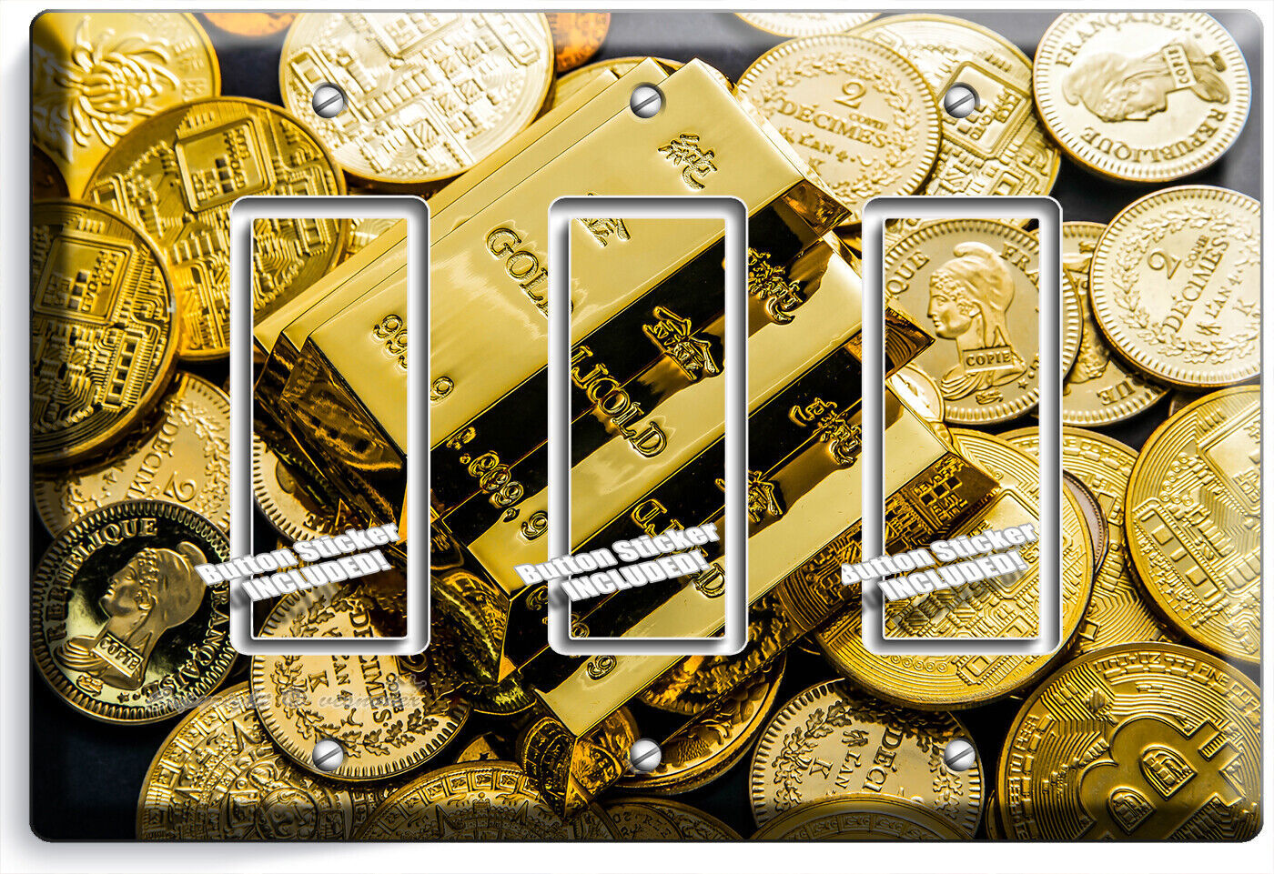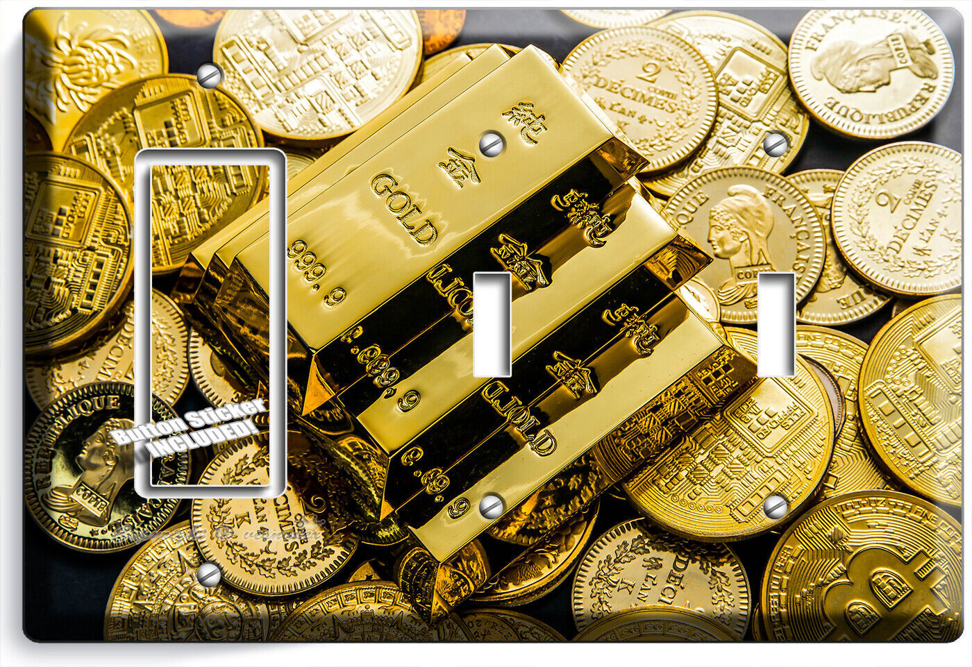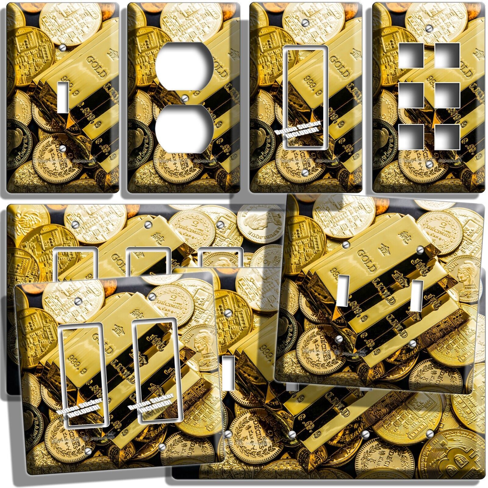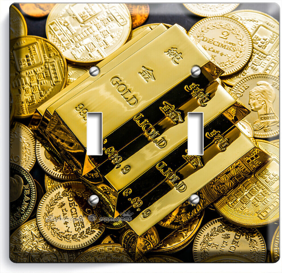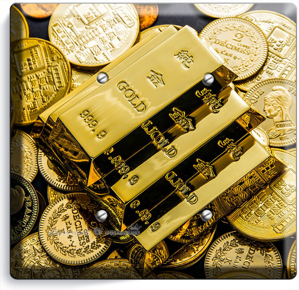 GOLD BARS COINS ABUNDANCE WEALTH MAGNET LIGHT SWITCH OUTLET WALL PLATES ROOM ART