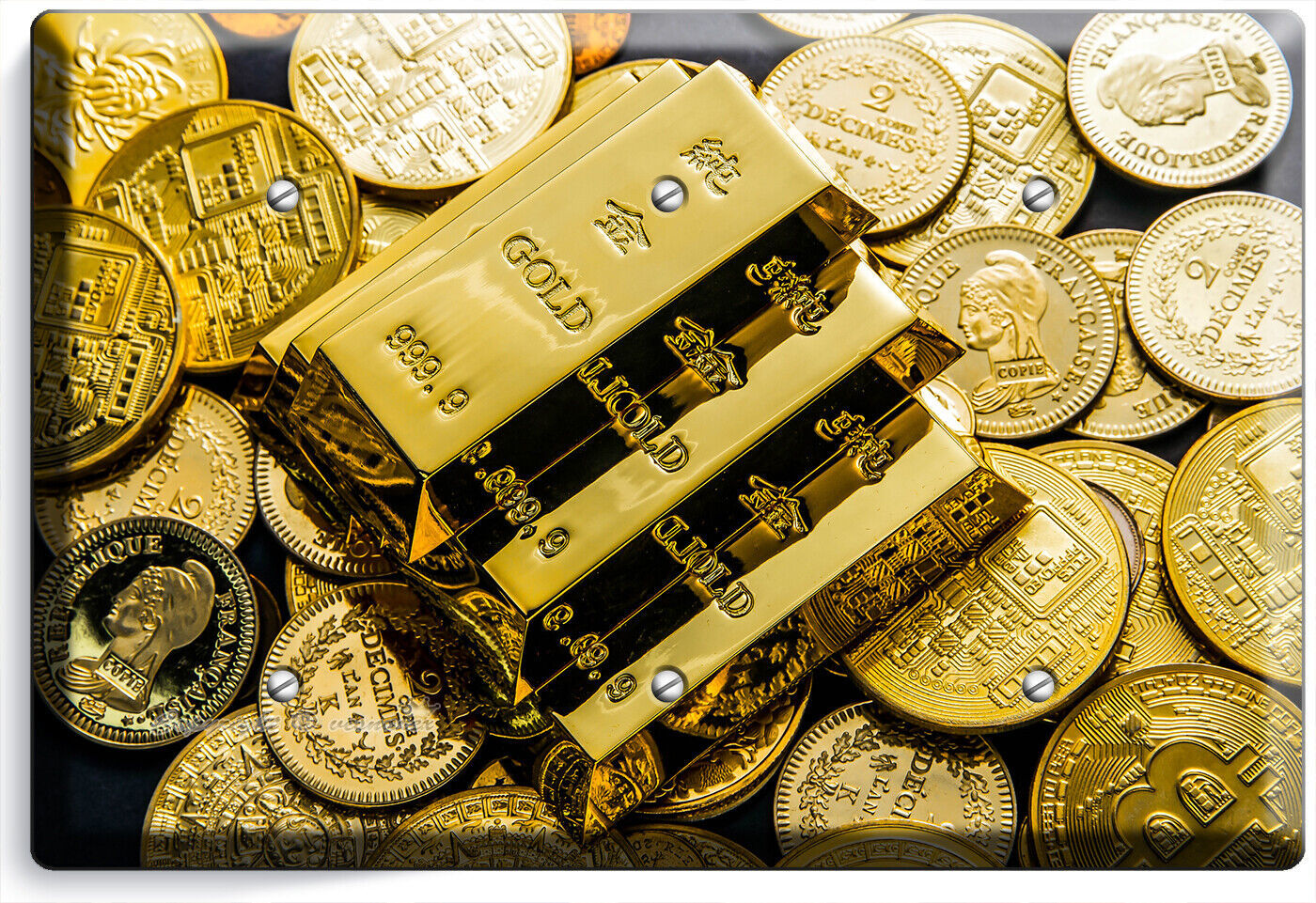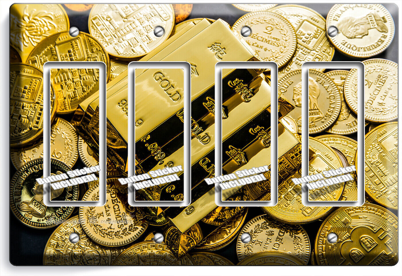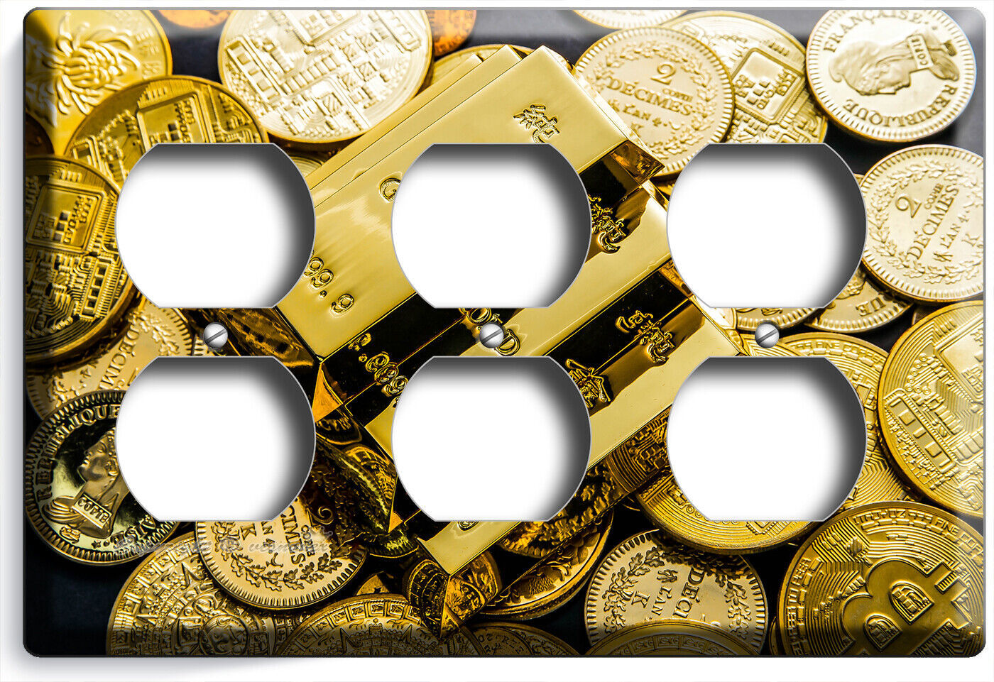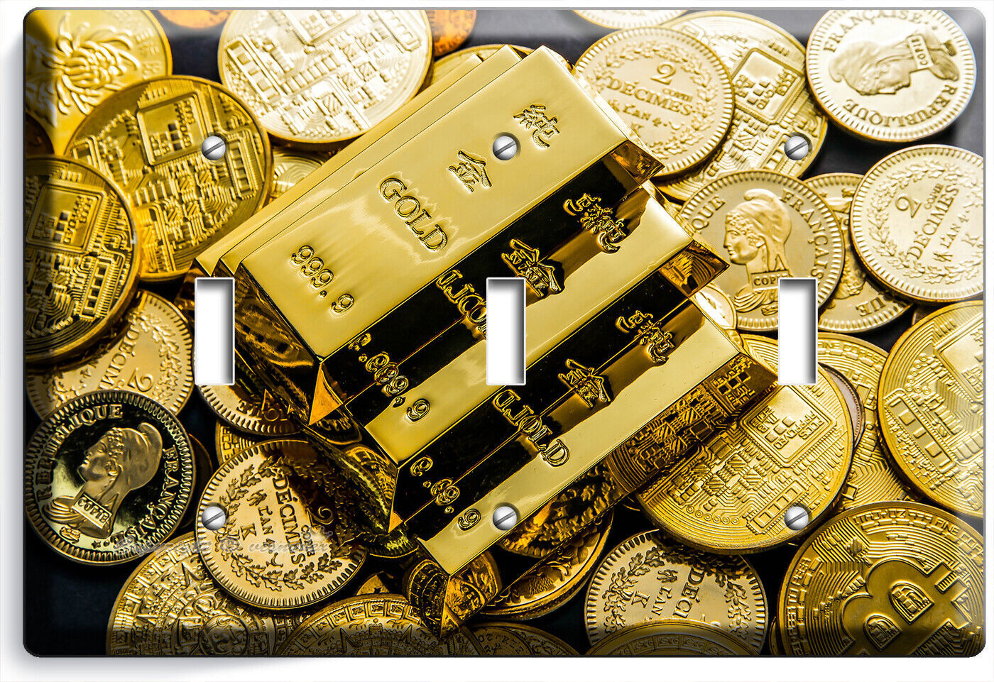 GOLD BARS COINS ABUNDANCE WEALTH MAGNET LIGHT SWITCH OUTLET WALL PLATES ROOM ART