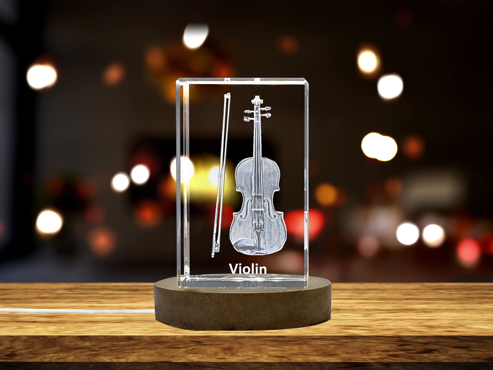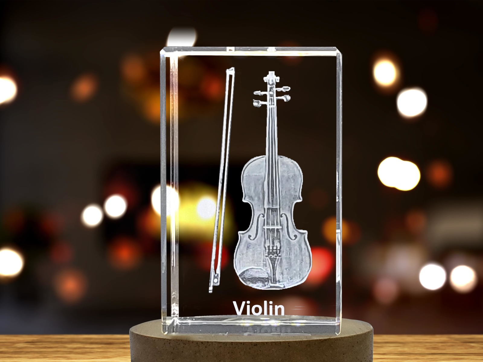 LED Base included | Violin 3D Engraved Crystal 3D Engraved Crystal Keepsake