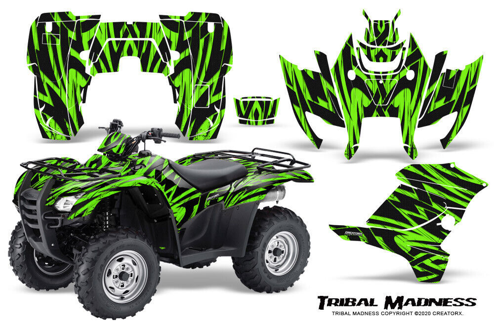 HONDA RANCHER AT 2007-2013 GRAPHICS KIT CREATORX DECALS TRIBAL MADNESS GREEN