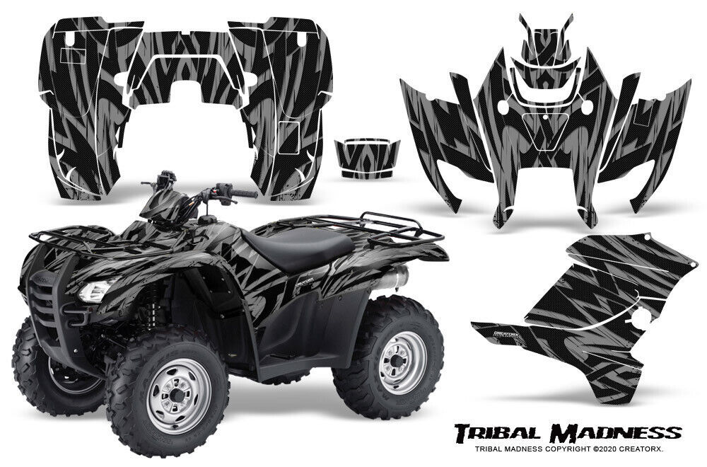 HONDA RANCHER AT 2007-2013 GRAPHICS KIT CREATORX DECALS TRIBAL MADNESS SILVER
