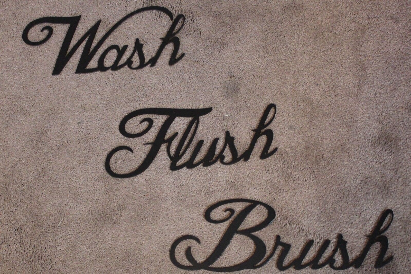 Wash Brush and Flush Black Bathroom/Restroom Wall Art Accents