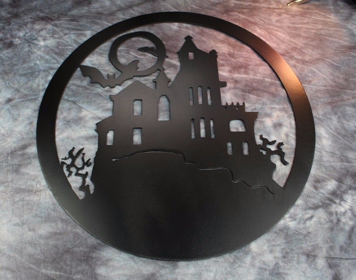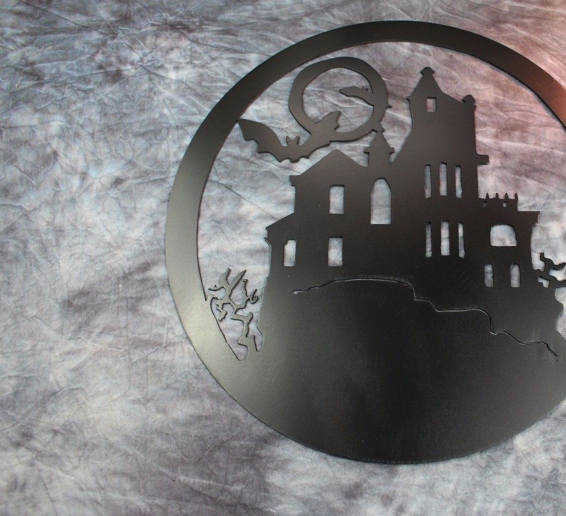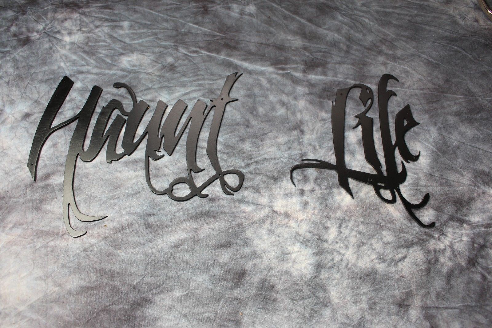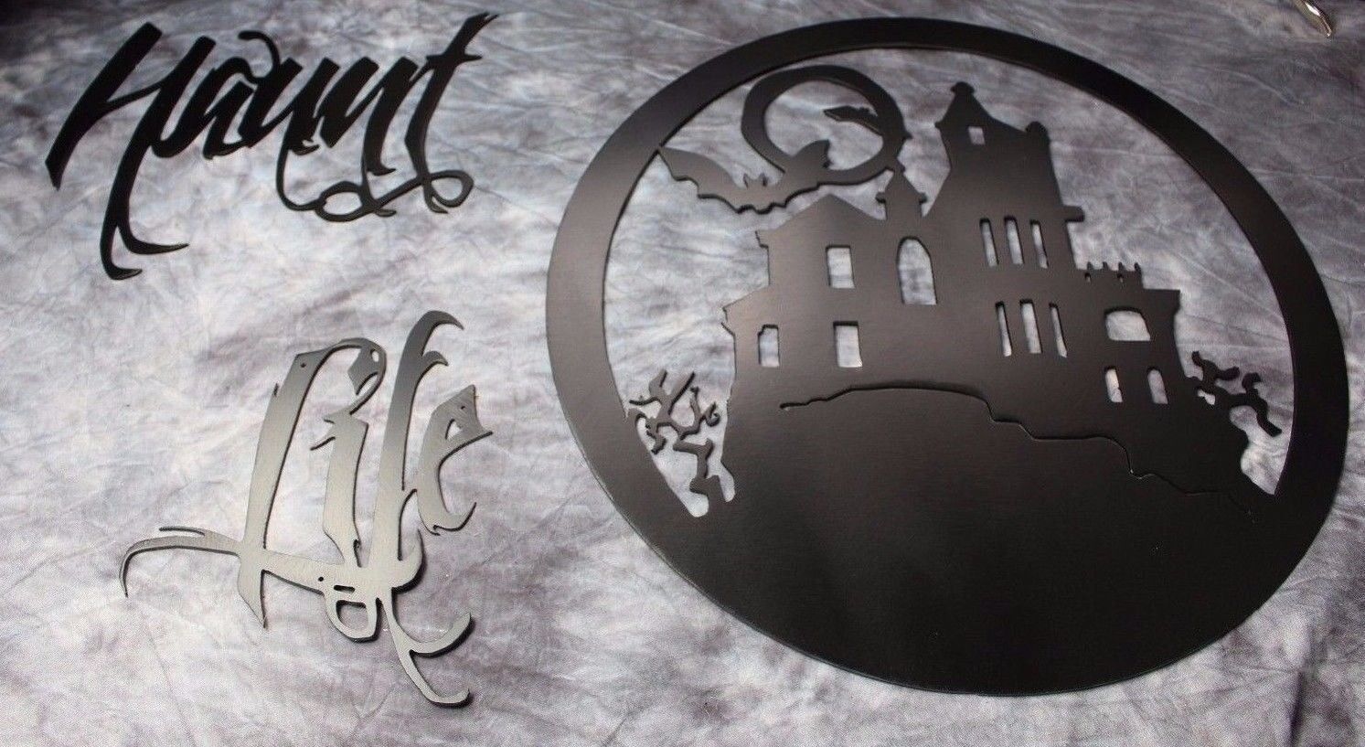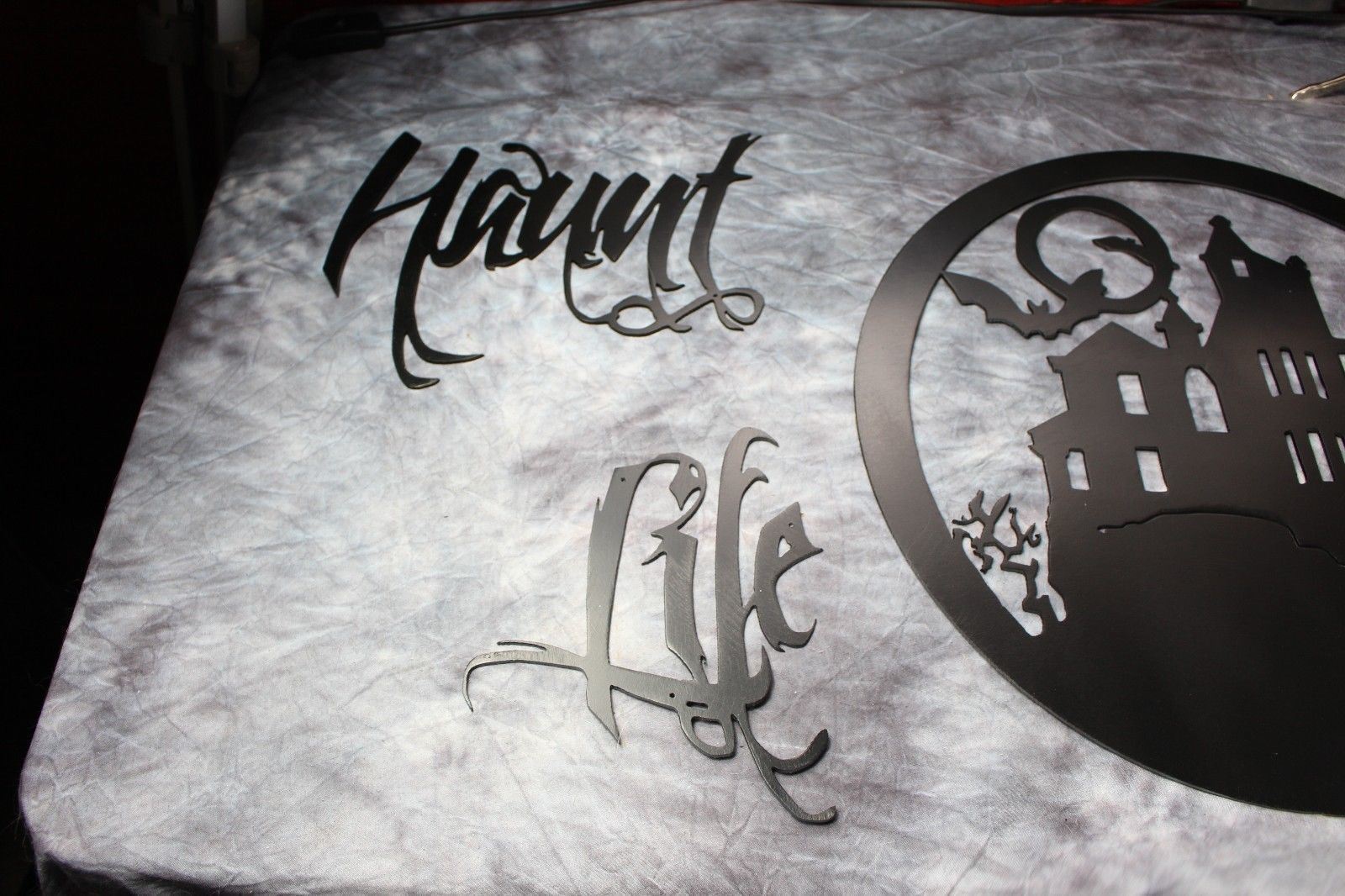 Haunted House and Haunt Life Words metal wall art Satin Black