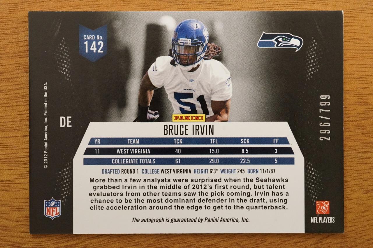 2012 Panini Momentum Rookie Signature 296/799 Bruce Irvin #142 Rookie Auto RC