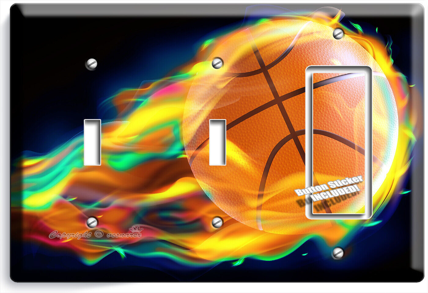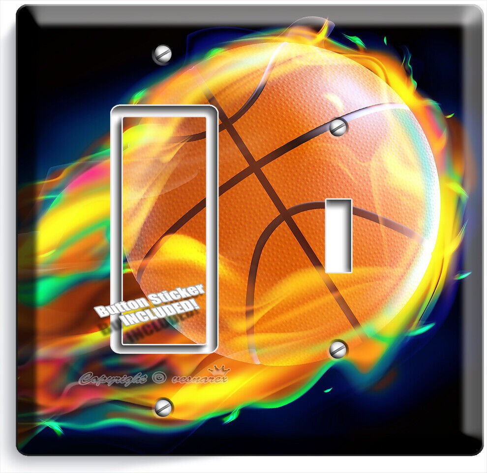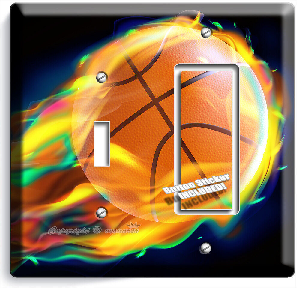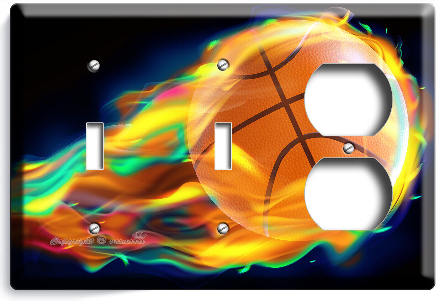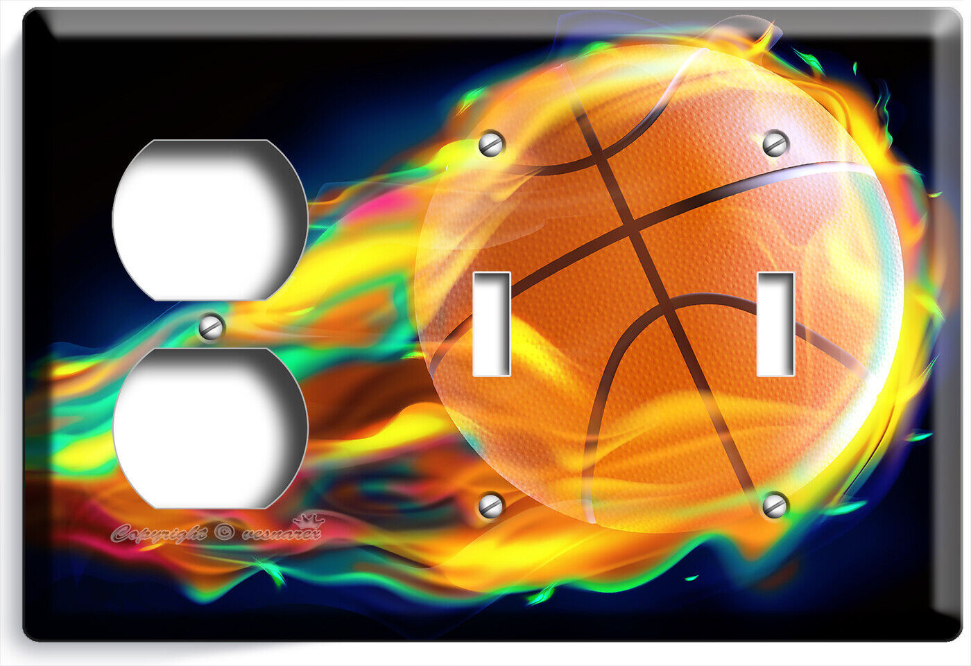 BASKETBALL BALL COLORFUL FLAMES LIGHT SWITCH OUTLET WALL PLATES SPORT ROOM DECOR