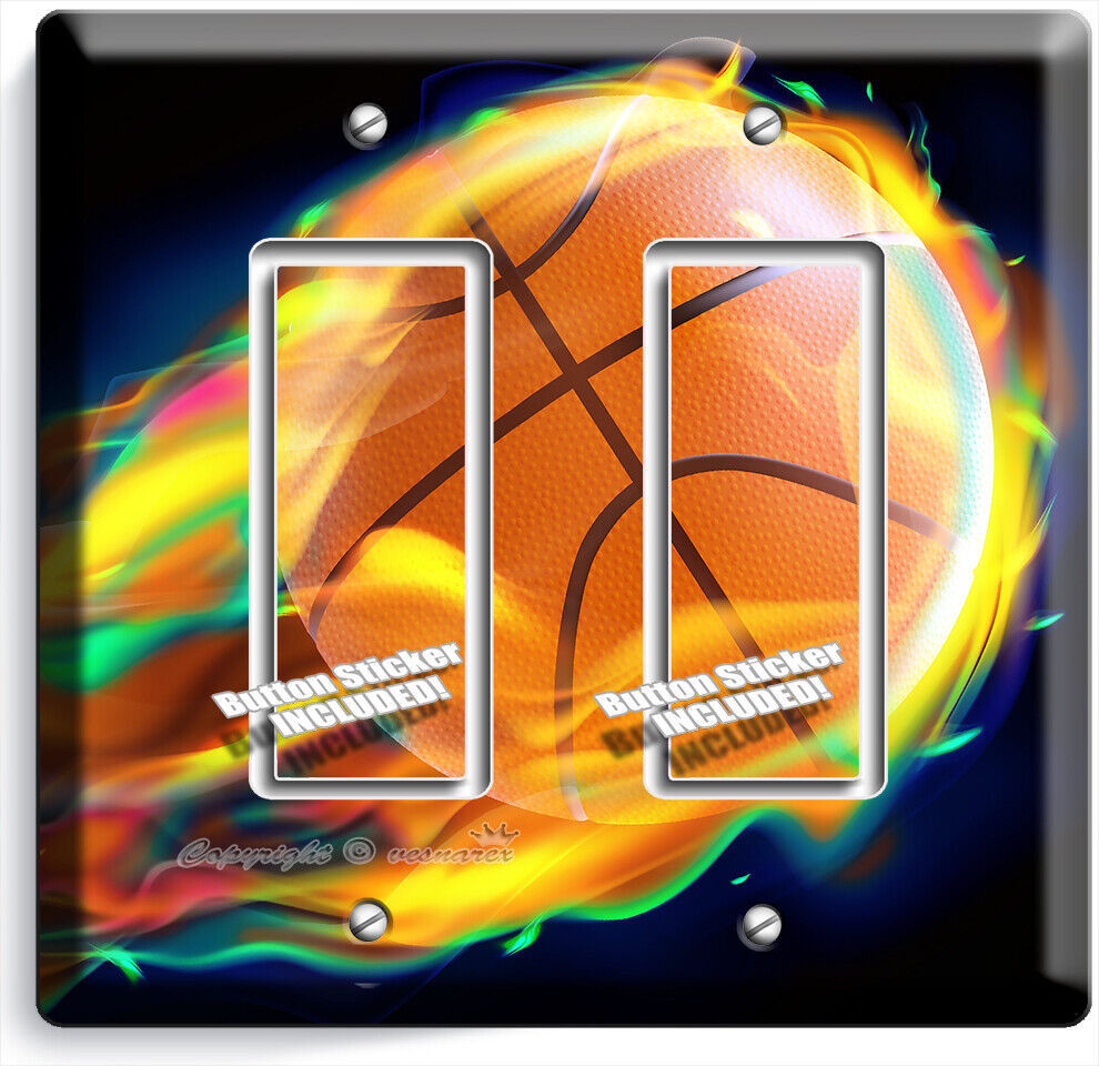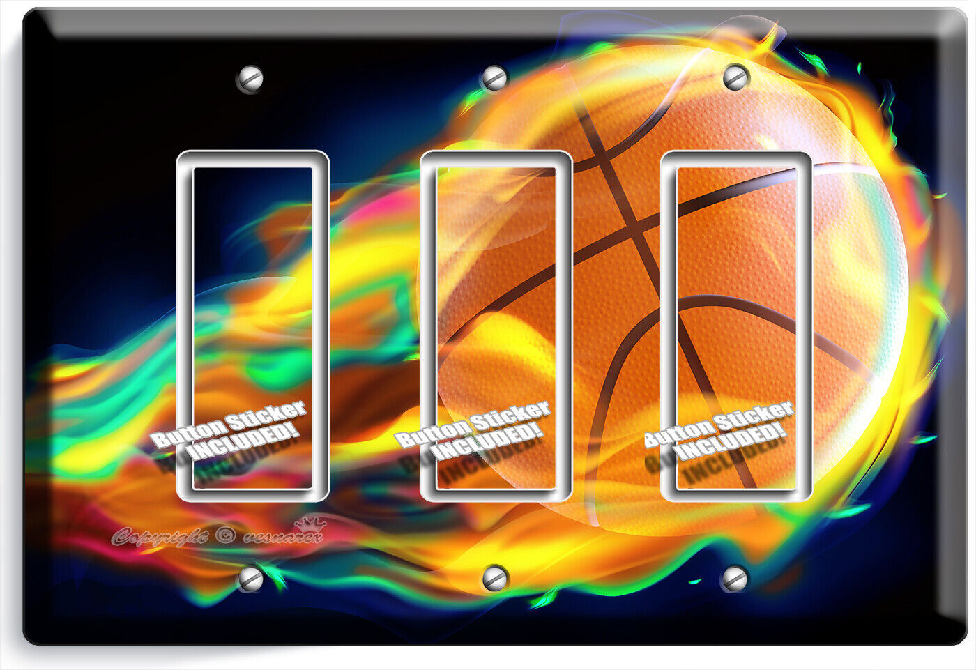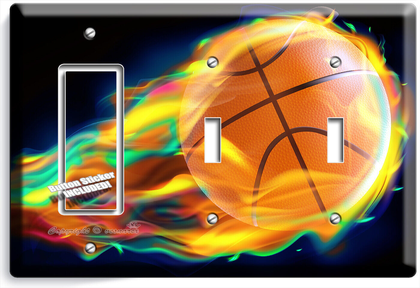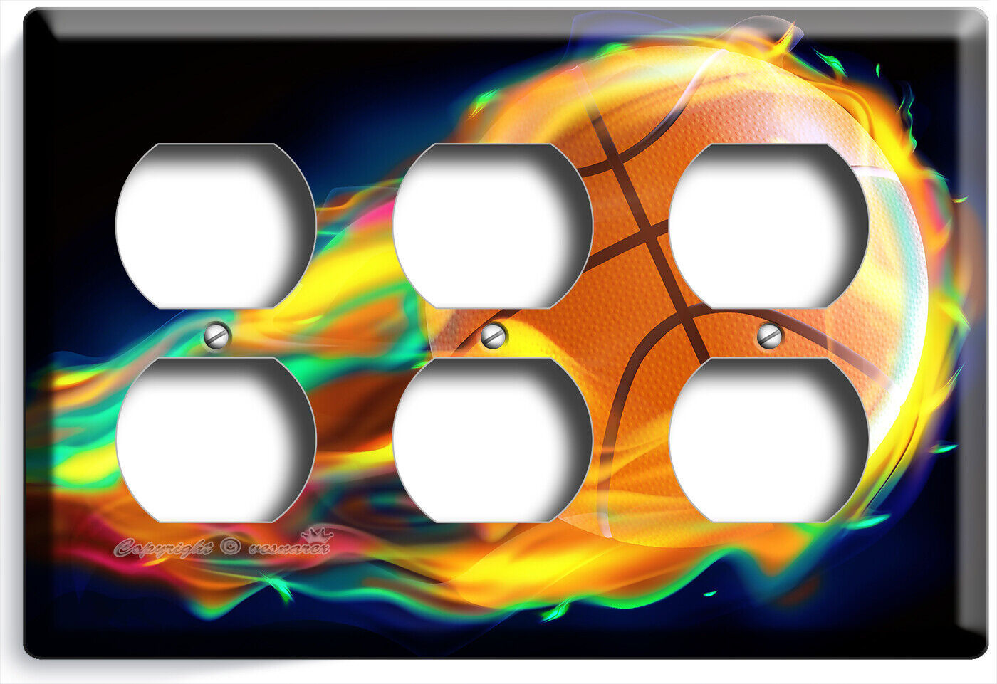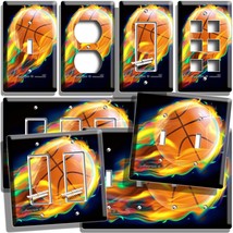 BASKETBALL BALL COLORFUL FLAMES LIGHT SWITCH OUTLET WALL PLATES SPORT ROOM DECOR
