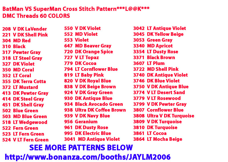 BatMan VS SuperMan Cross Cross Stitch Pattern DMC DIY NeedleWork****L@@K***