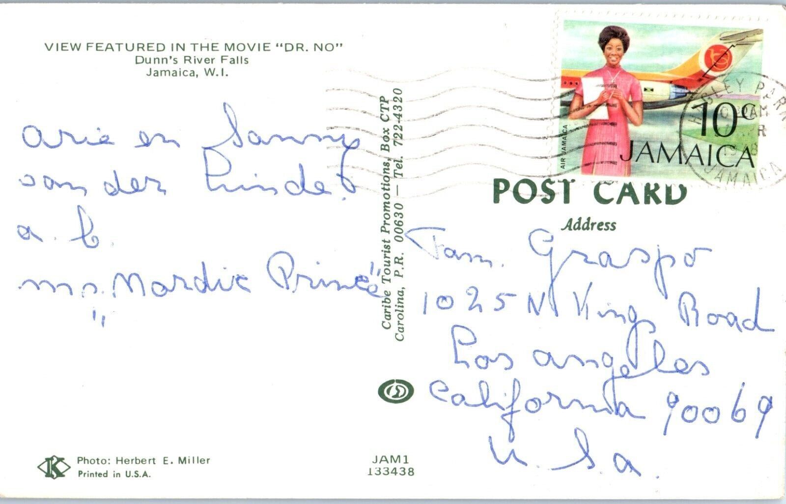 Dunns River Falls Ocho Rios Jamaica Postcard w Air Jamaica Stamp Dr No View