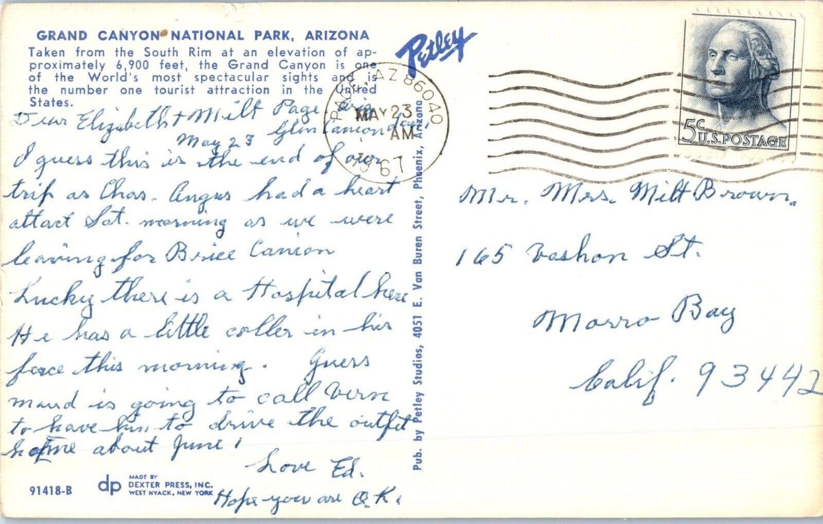 Grand Canyon National Park Arizona Postcard Posted 1967