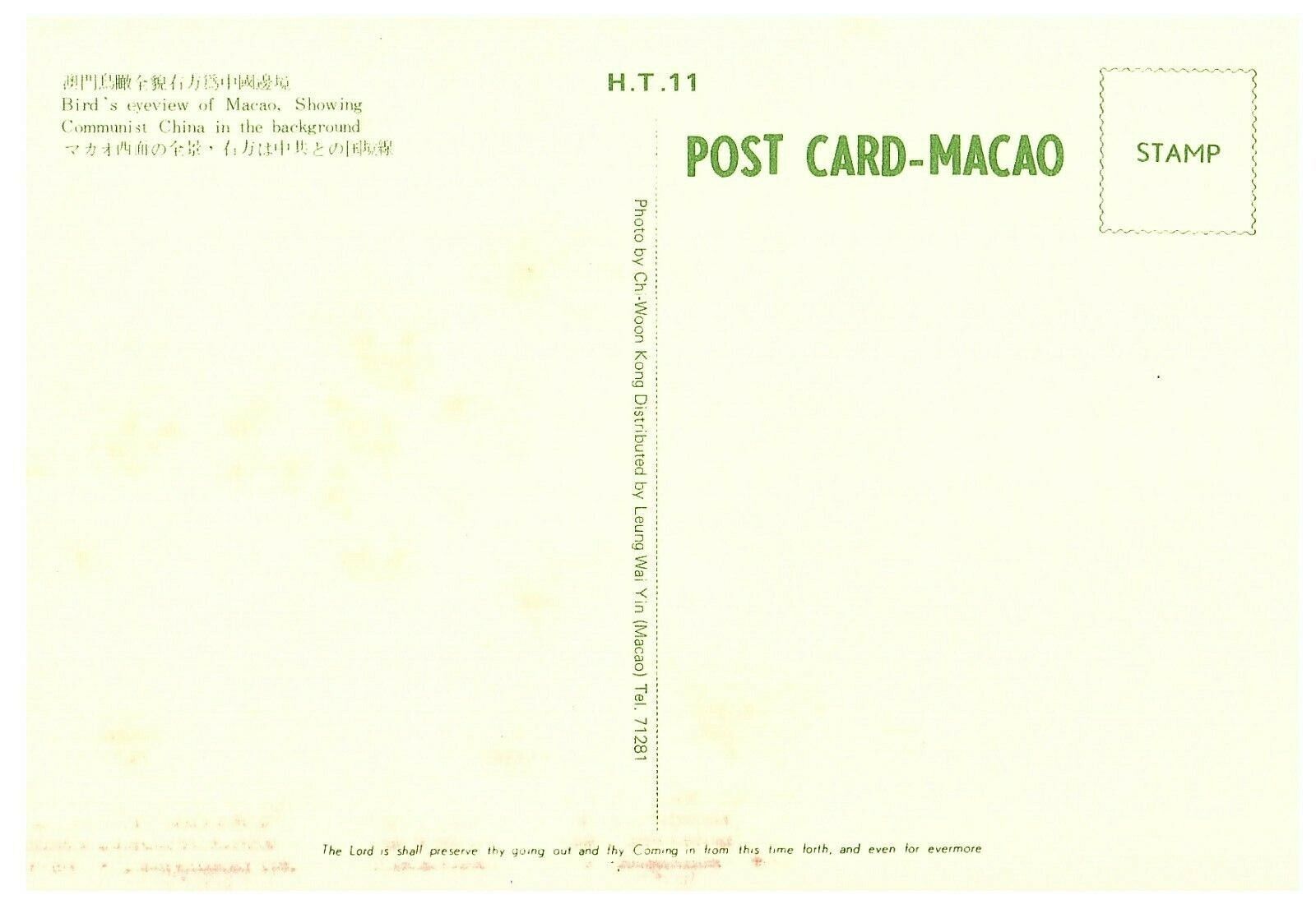 Bird's Eye View Macao w/ Communist China in Background Postcard 1980s HT 11