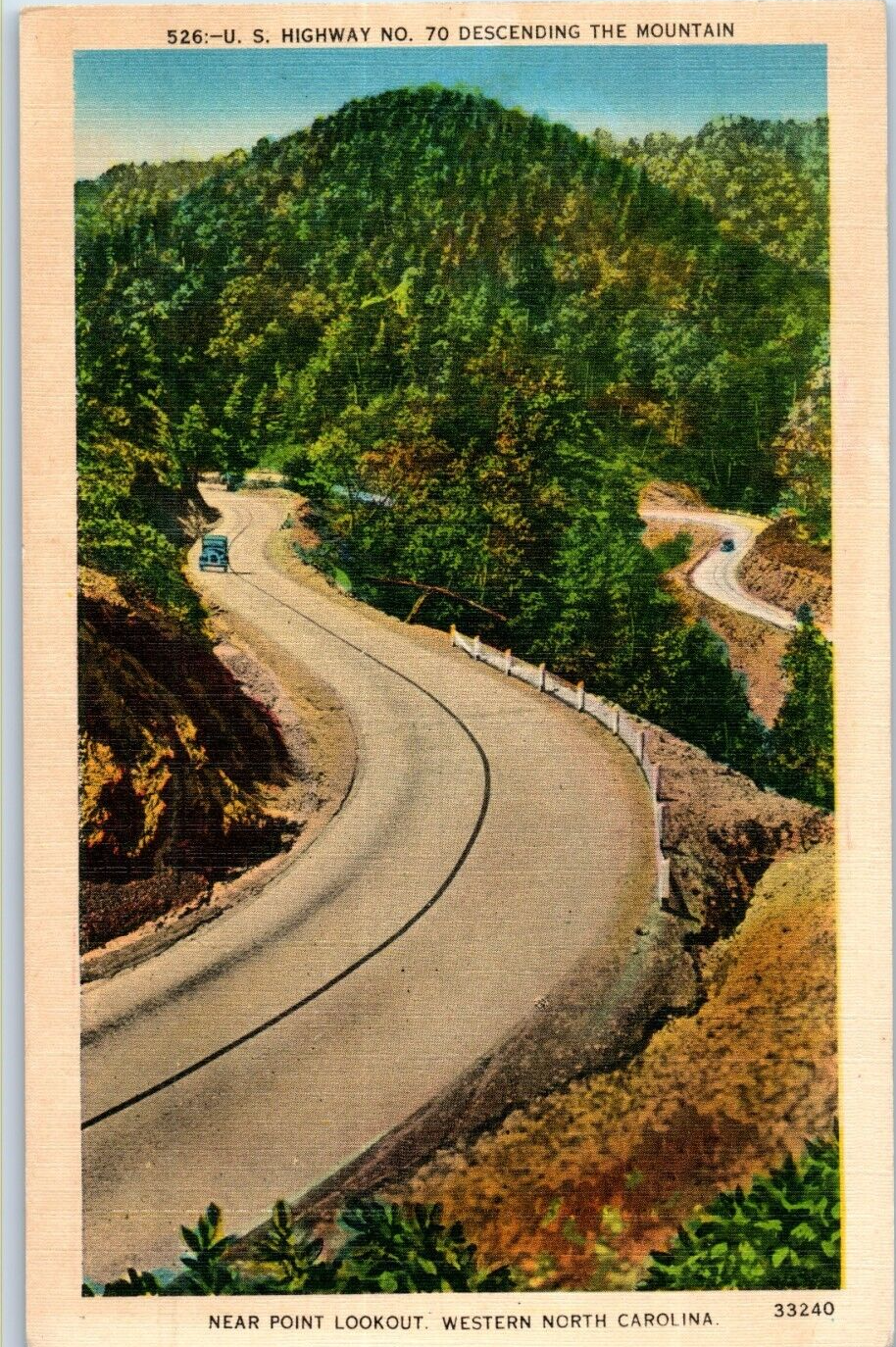 US Highway NO 70 Descending Mountain near Point Lookout North Carolina Postcard