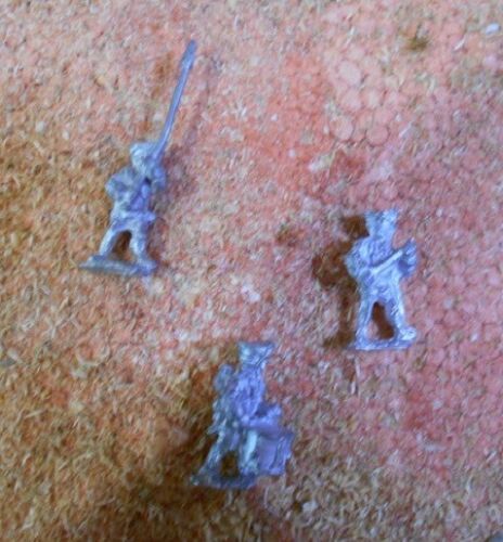 These are unpainted, new although they were taken out of the packs to take pictures. Lead figures are easy to bend back into their proper shape, but they are delicate, so do so slowly and carefully.