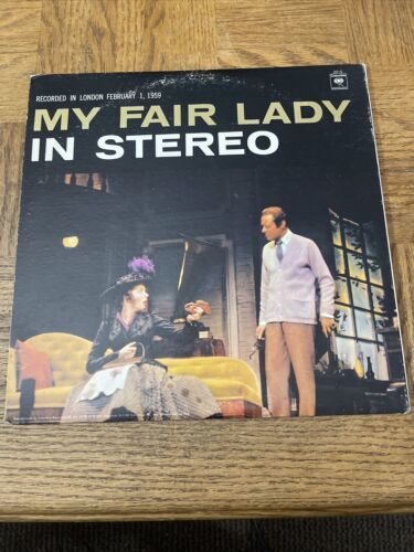 The 'My Fair Lady' album is presented in the classic LP format, featuring various songs from the musical, such as 'Wouldn't It Be Loverly' and 'I Could Have Danced All Night'. Aspects of the record include the incredible performances of the actors and the high-quality sound production. Overall, this vinyl record is a gem for collectors and music lovers alike.